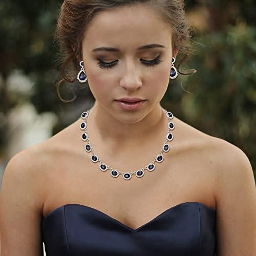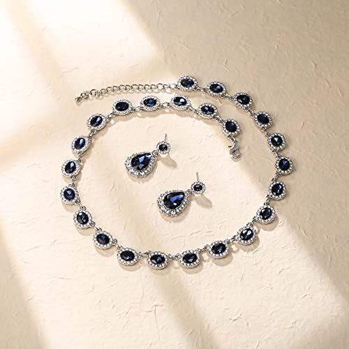 Crysdue Bridal Wedding Jewelry for Women Oval Teardrop Rhinestone Crystal Collar Necklace Pierced Dangle Earrings Set for Prom Party