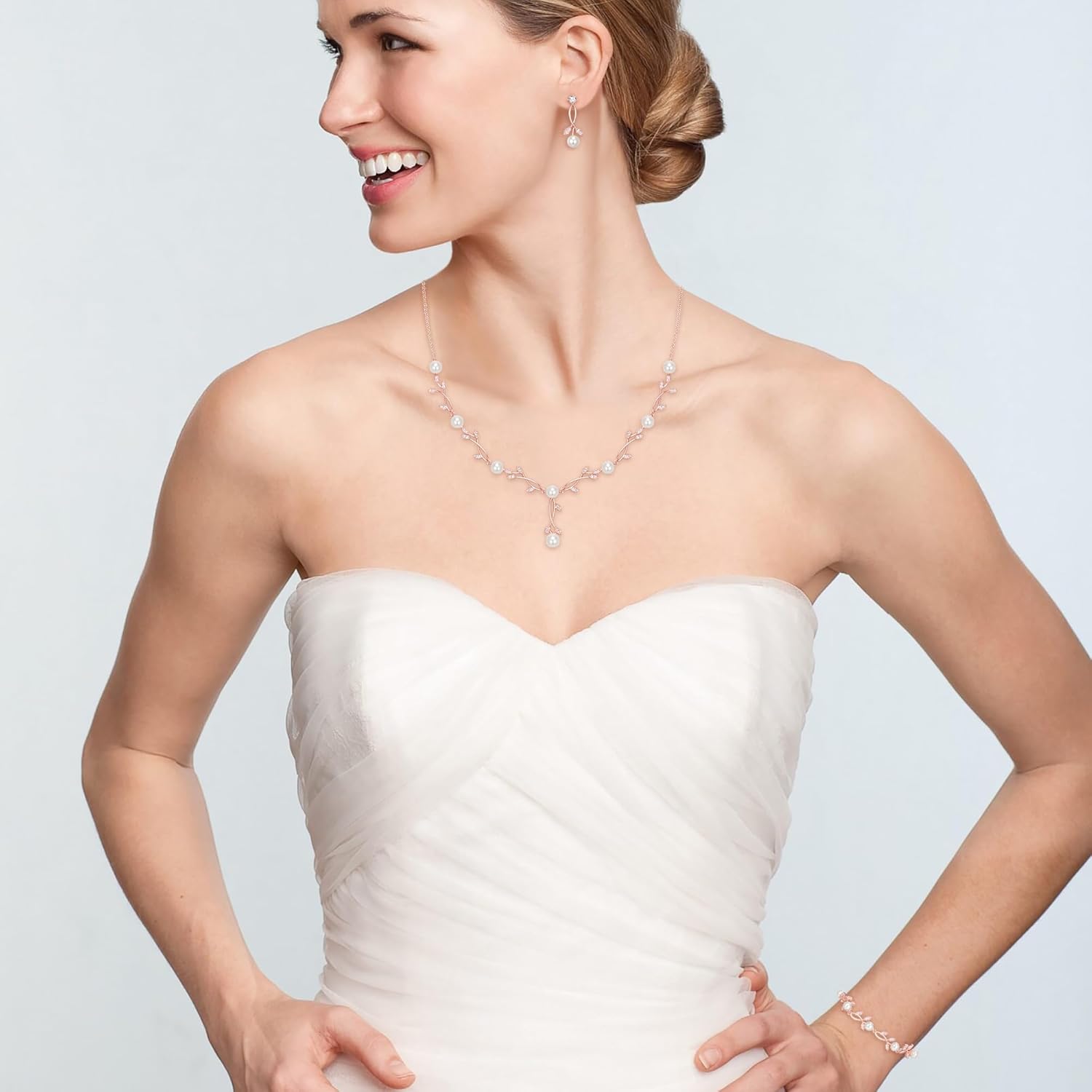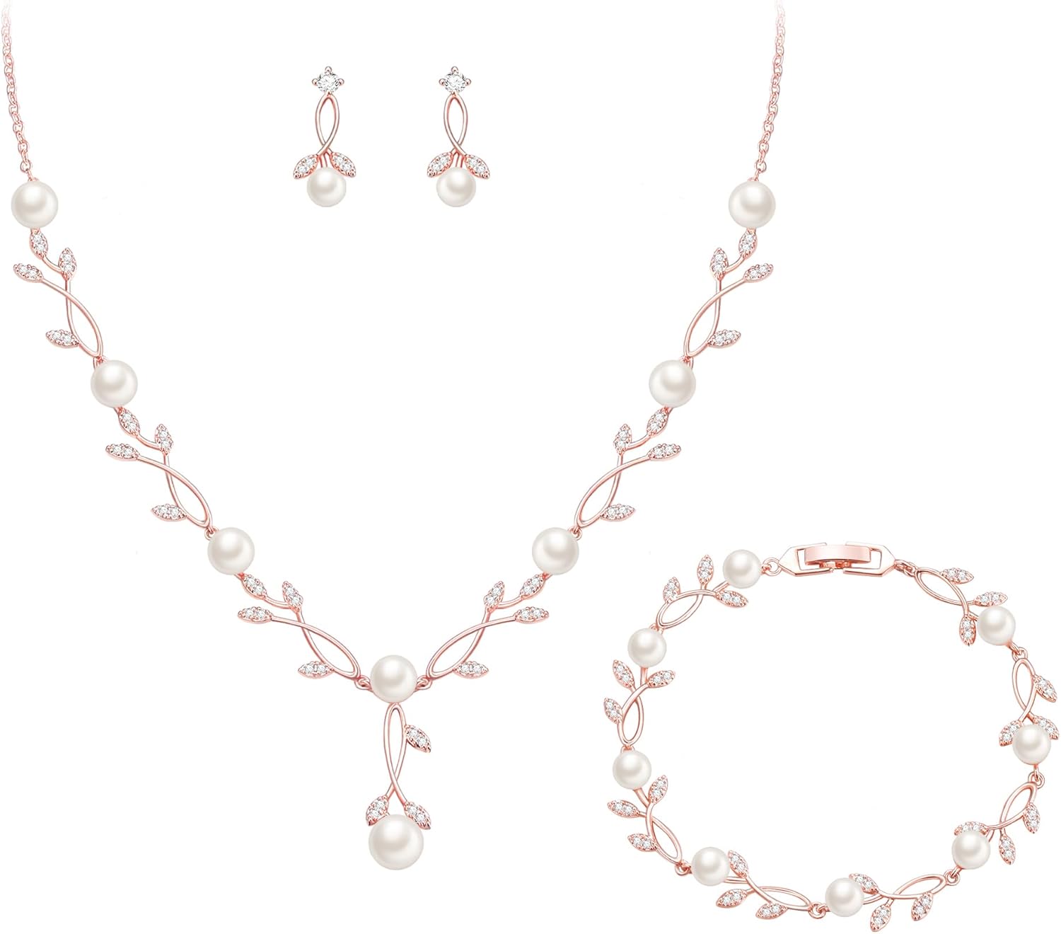 - Material: Stunning bridal jewelry set is made of brass, inlaid with pear shape Cubic Zirconia and simulated pearl. This special design is born to match the clothes and your unique beauty.