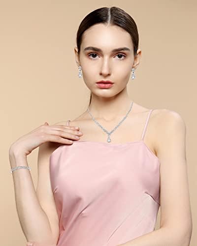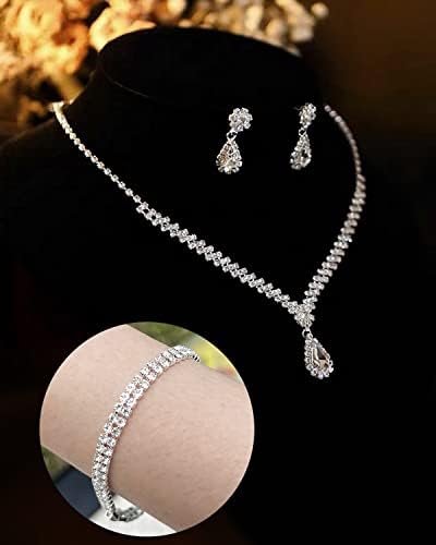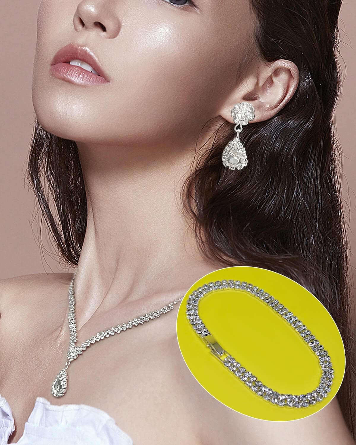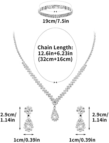 - [Proper Size] Wedding Rhinestones Necklaces length : 48 cm / 18.9 in.Rhinestone Teardrop Earrings Size: 2.9 cm / 1.14 in,width: 1 cm / 0.39 in. Bracelet length: 19 cm / 7.5 in.The size of the wedding jewelry suit is suitable for most women. The thoughtful design can make you better match the dress and make you shine