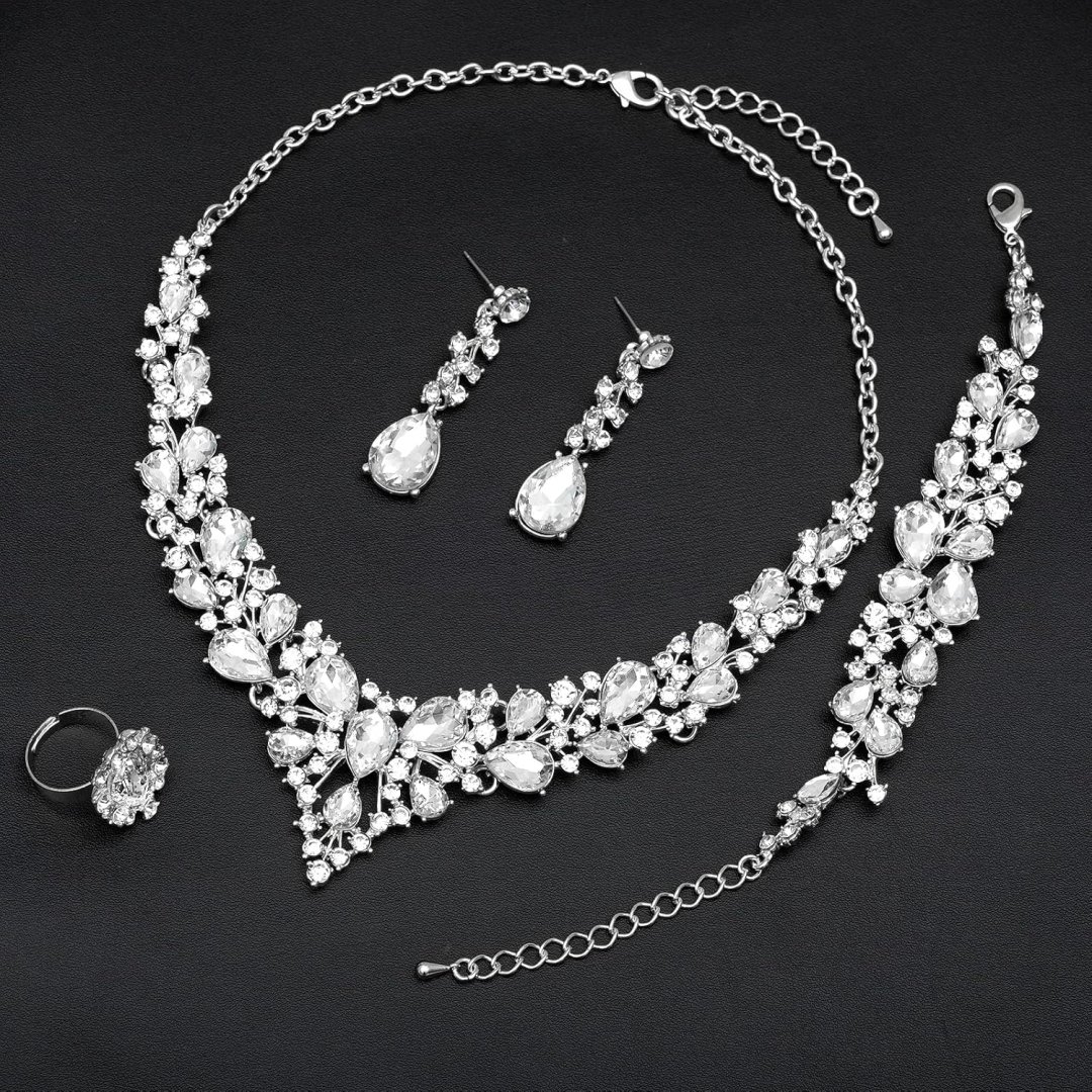 - Size : Necklace Adjustable Chain Length 42cm (16.5in)- 6cm (19in), Drop Earrings Length: 5cm(2in). Bracelet Length: 15cm(5.9in)-22cm(8.6in), The Ring Size Can be adjusted, No Worry About Size Problem.