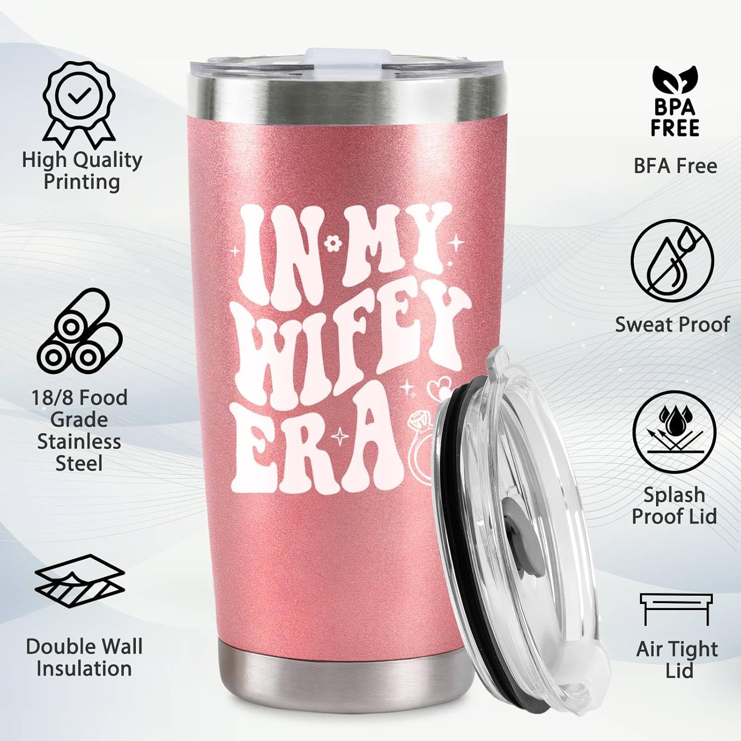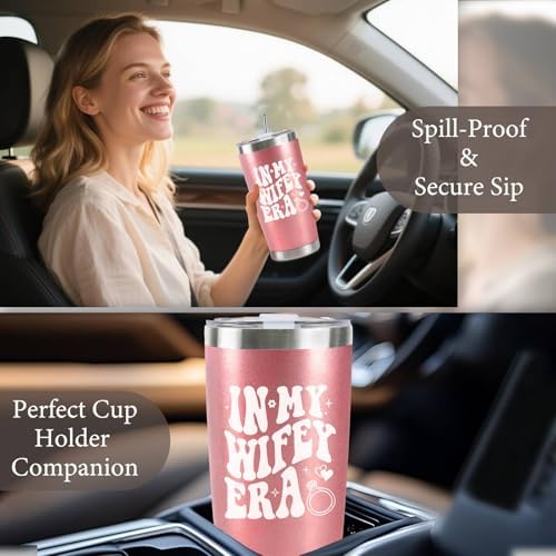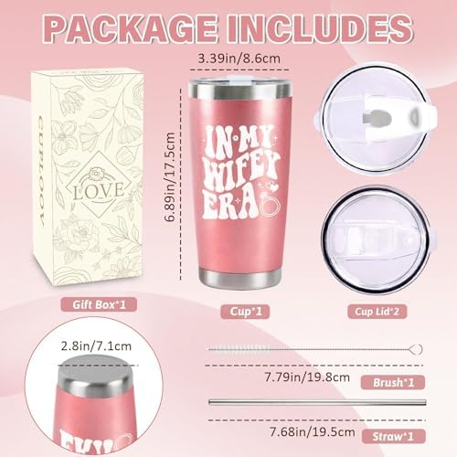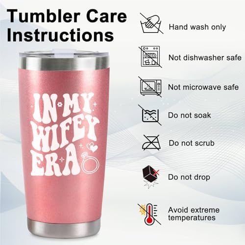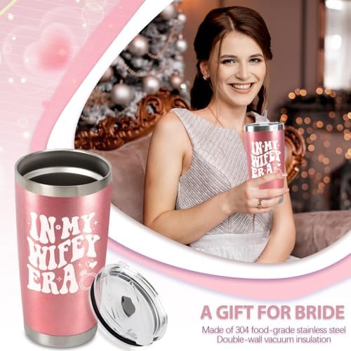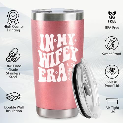 - Perfect Gift for Bride: Celebrate the bride’s special moments with this 20 oz rose gold stainless steel travel tumbler, engraved with the playful phrase “In My Wifey Era.” It’s a thoughtful bachelorette gift for bride, engagement gift for couples, funny wedding gift, mr and mrs gift