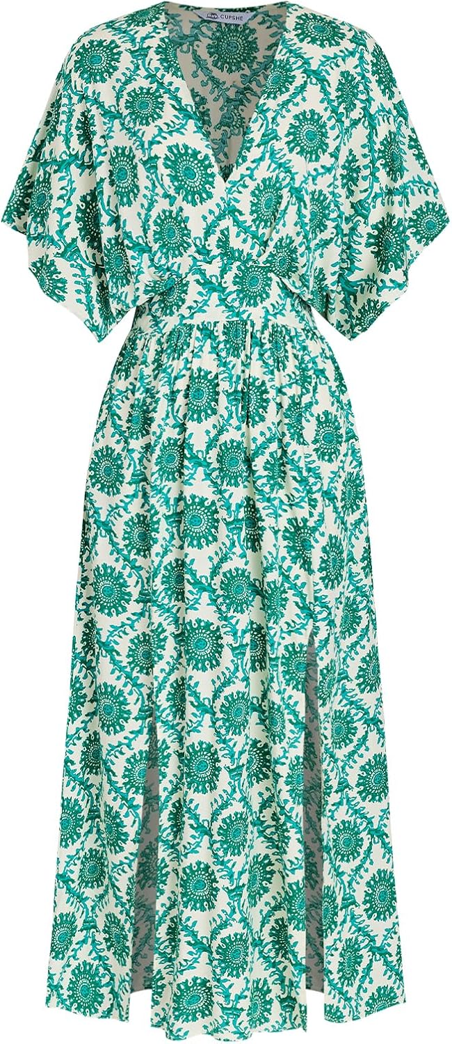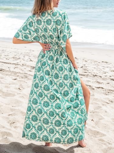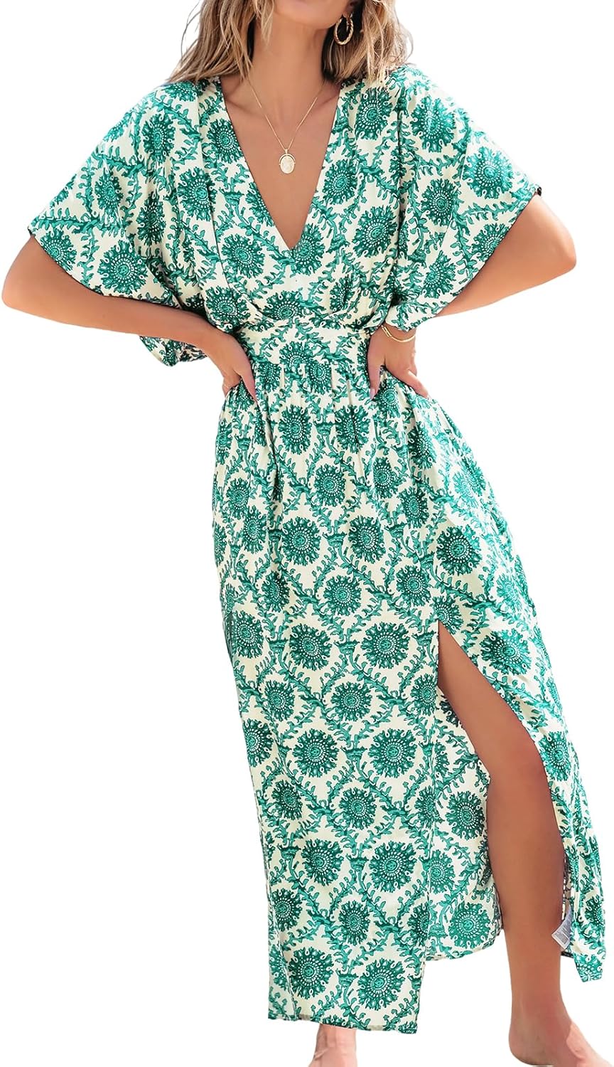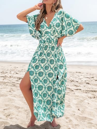 - [Features]: Summer Dresses for Women / Green Maxi Dresses / Beach Boho Dresses / Half Dolman Sleeve Plunging V Neck Dress / Empired Waist Side Slit Dress / Bohemia Vibe Sundresses / Casual Holiday Dresses