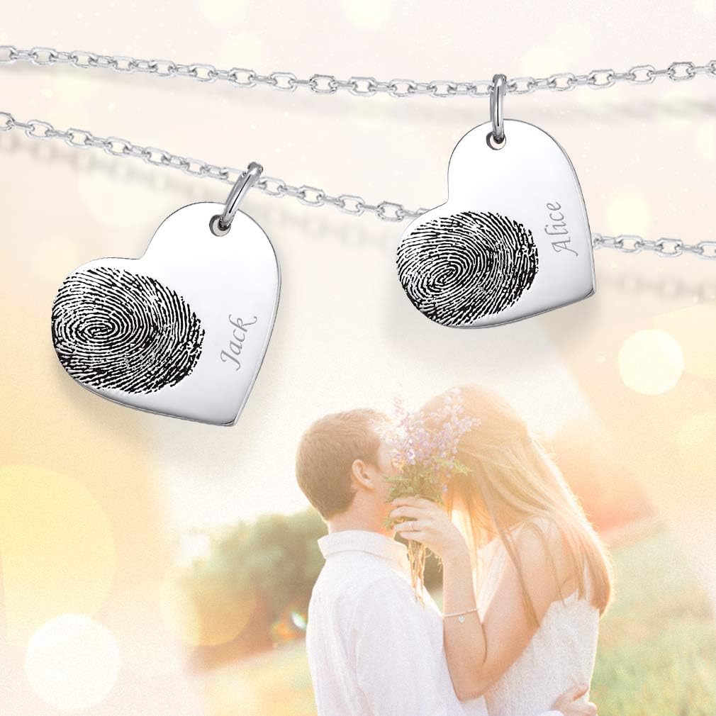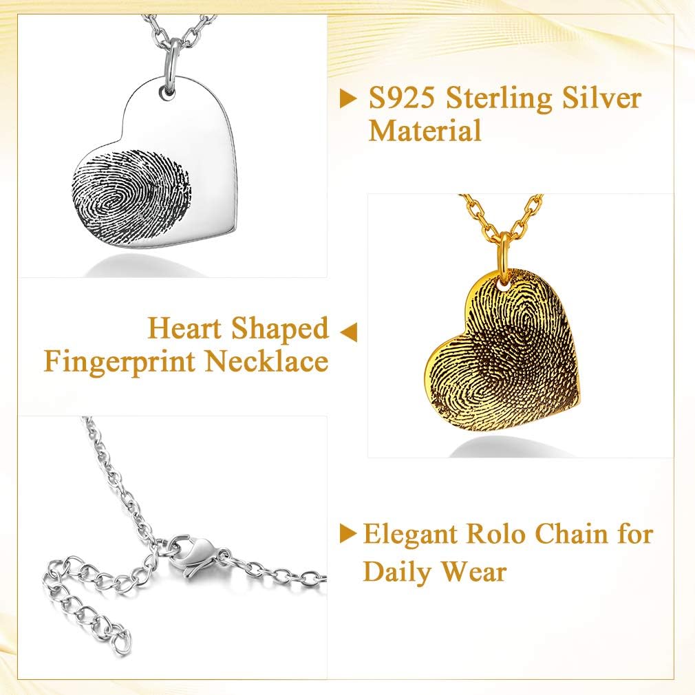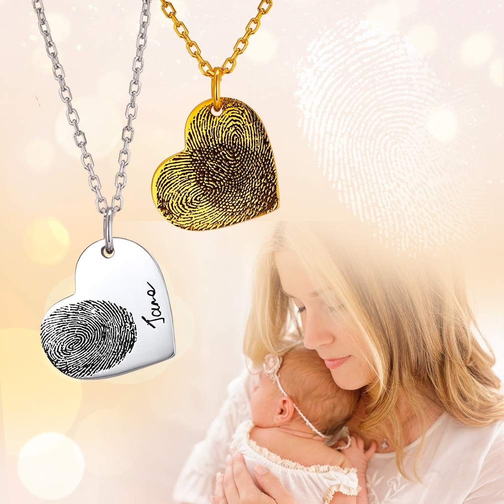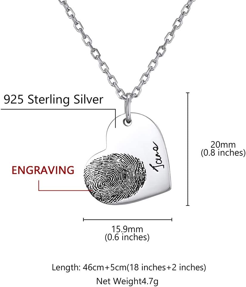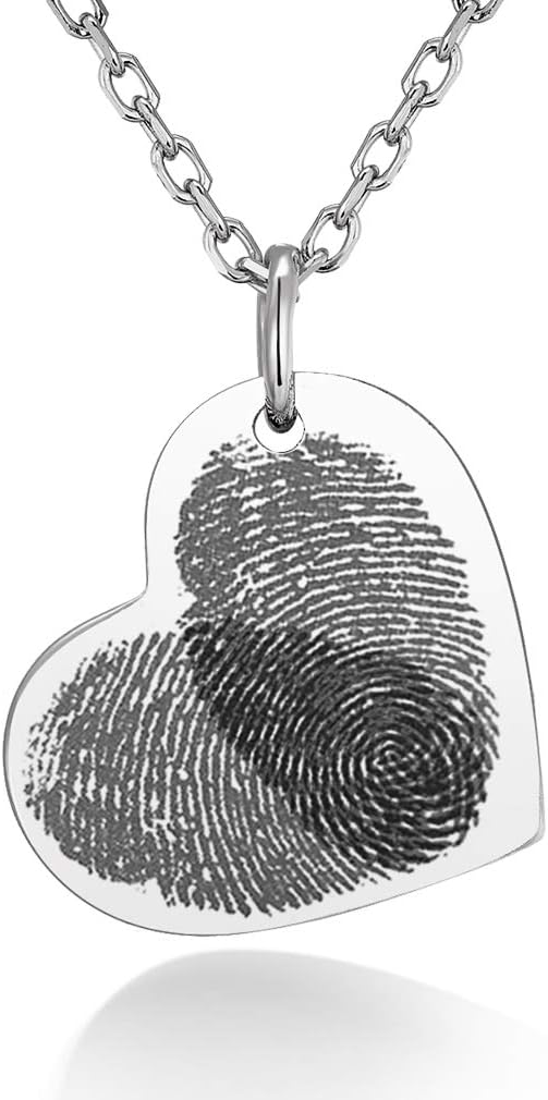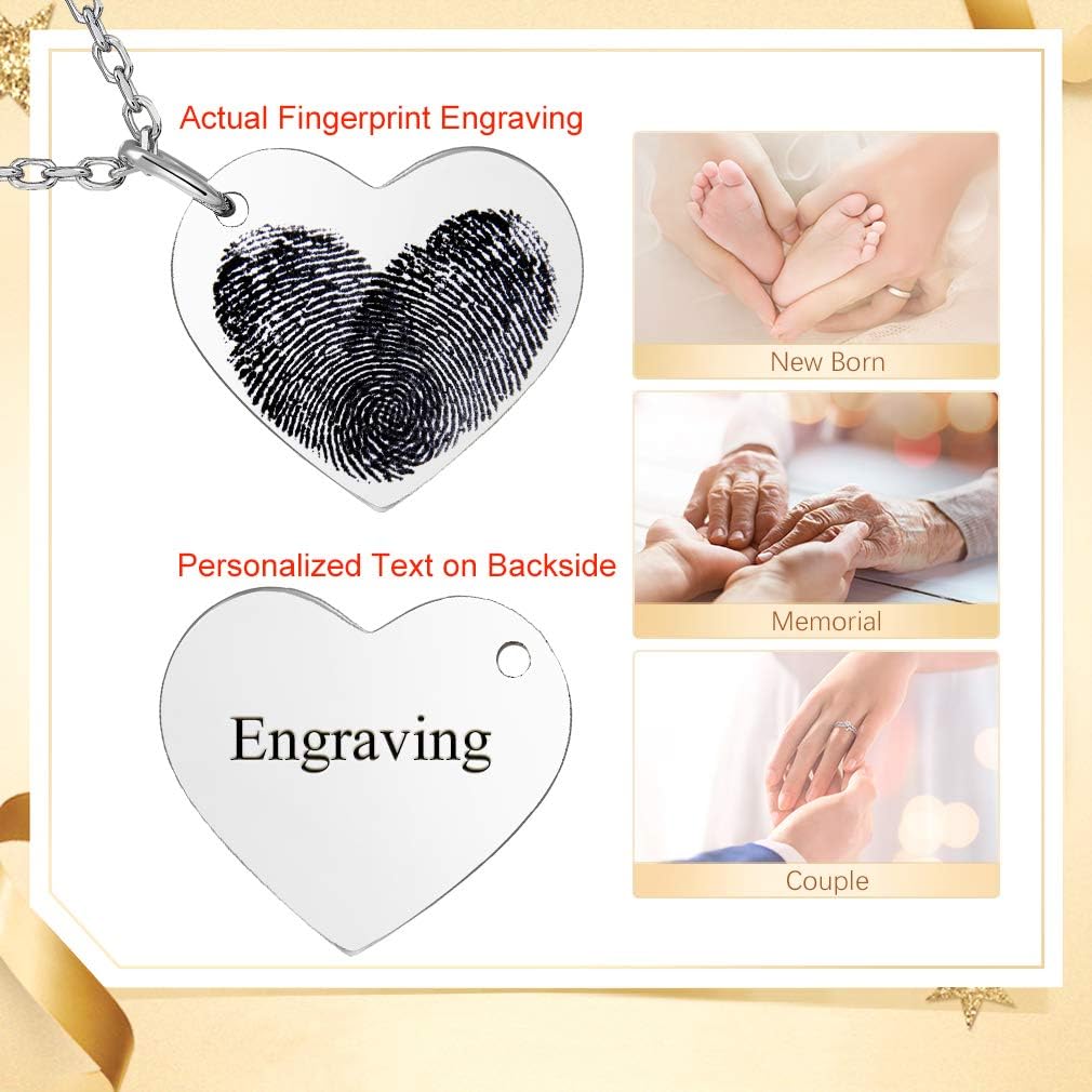 - [Custom Fingerprint Necklace]Personalized fingerprint memorial jewelry,you can also custom finger Print,Pet Cat Dog Paw,etc.Name,Birthday,Letter,Initial,Symbol,Faith,Inspirational words customized on the front side and back side.Fingerprint heart necklace is the best sentimental gifts, if you want to touch the heart of your loved one and impress them beyond expectations.