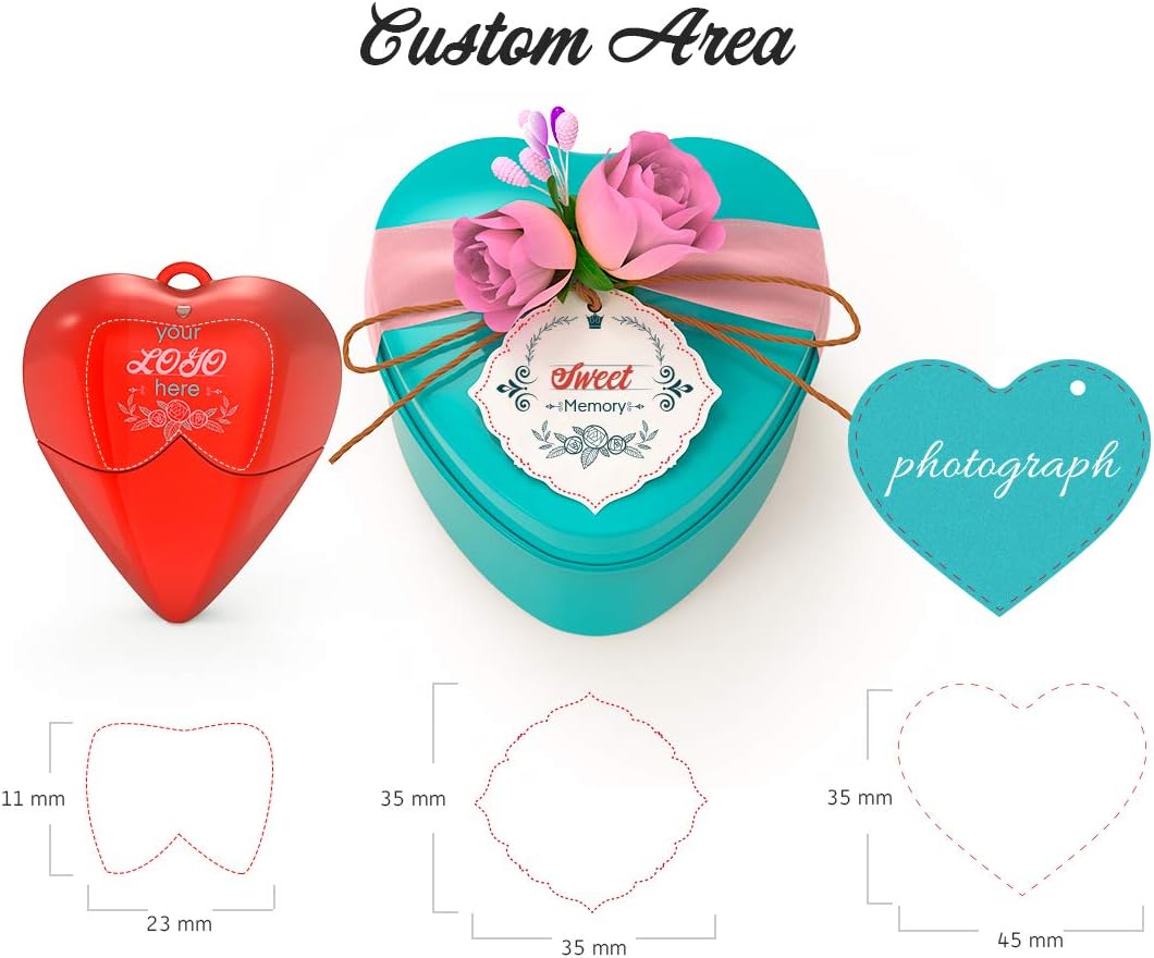 Customized Heart Shape USB Flash Drive Custom Wedding Thumb Drive with Photo and Gift Box 64GBUSB3.0 500PACK