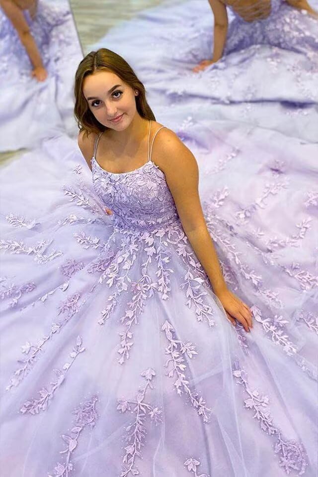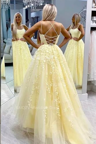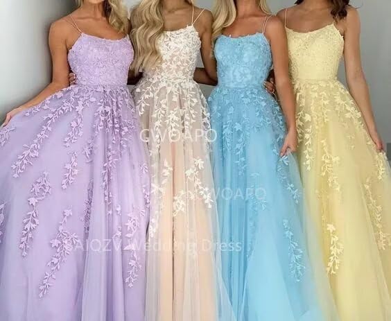 • CWOAPO “66”:Customized Spaghetti Straps Appliques Wedding Gown Lace Tulle Ball Gown Prom Dresses for Women A Line Princess Prom Dresses for Teens Girls Juniors Sweet 16 Dress High School Dance Prom Dress