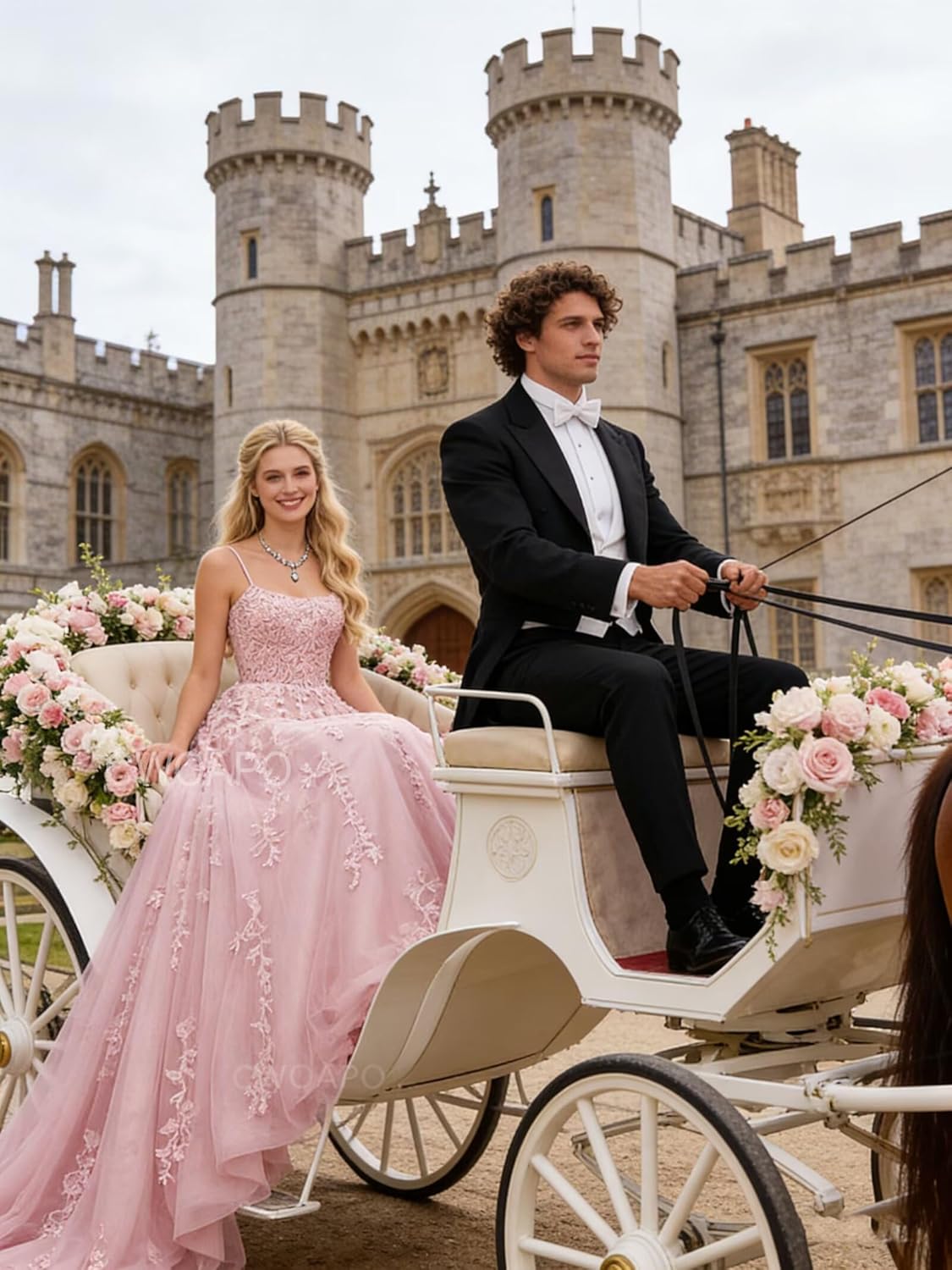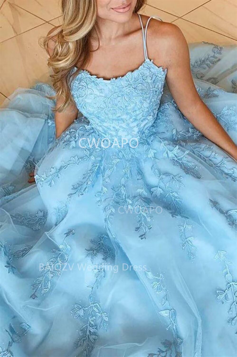 • CWOAPO Style Custom:Ball Gown Appliques Spaghetti Straps Long Prom Dresses for Women Wedding Gown Photoshoot Dresses for Women
