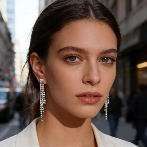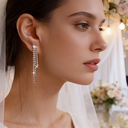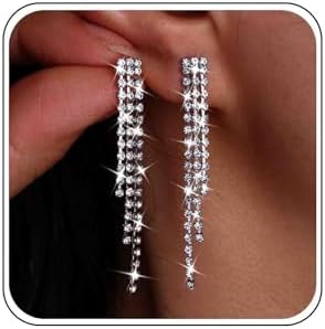 - Rhinestone Fringe Earrings.Perfect gift for your brides,bridesmaid or your mother,wife,friend,Family,etc.Sparkly and elegant and beautiful.