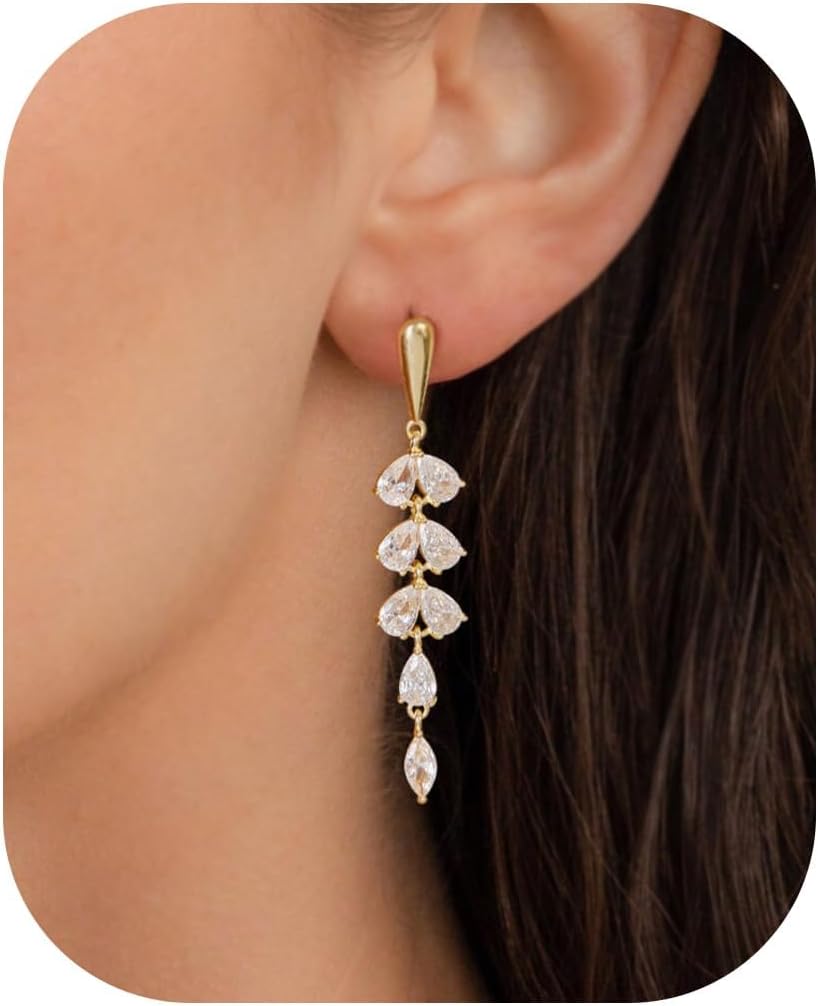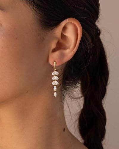 - DAINTY YET SOPHISTICATED: These cubic zirconia earrings feature slim, elegant silhouettes and delicate stones—perfect for women who love understated luxury.
