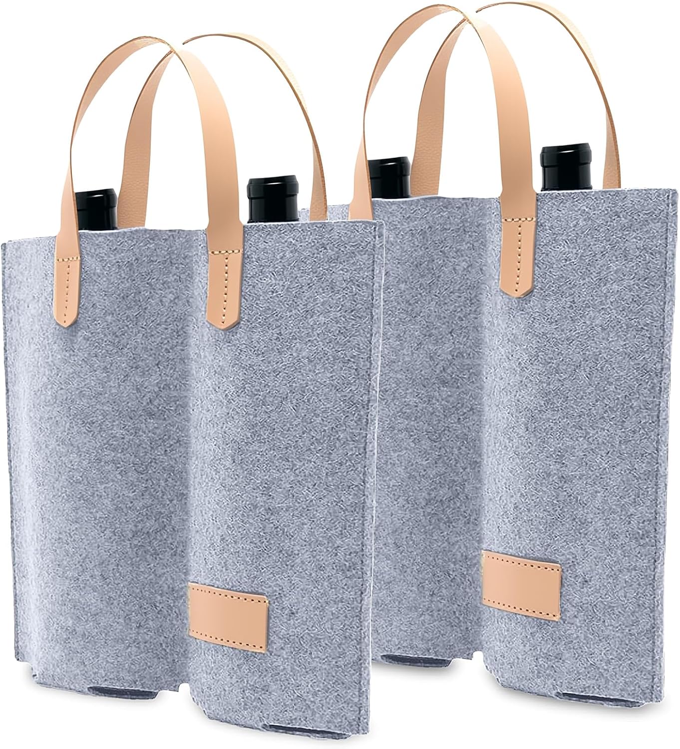 - NOBLE AND ELEGANT DESIGN: Our gift wine bottle bags are designed with a classic base color, simple and generous, felt with leather handles add a sense of luxury, it is easy to attract the attention of others; this is a beautiful interpretation of your thanksgiving gift wine bags, friends and family who receive the gift will surely appreciate your aesthetics