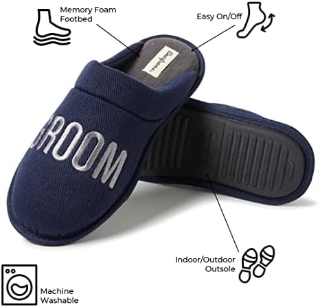 - SLIDE-ON DESIGN: Dearfoams Bridal Slide-On Slippers are cute, cozy, comfortable and sure to put a smile on your face. These slippers are perfect for you and your crew to slide-on before the big day and capture some Instagram-worthy pictures!