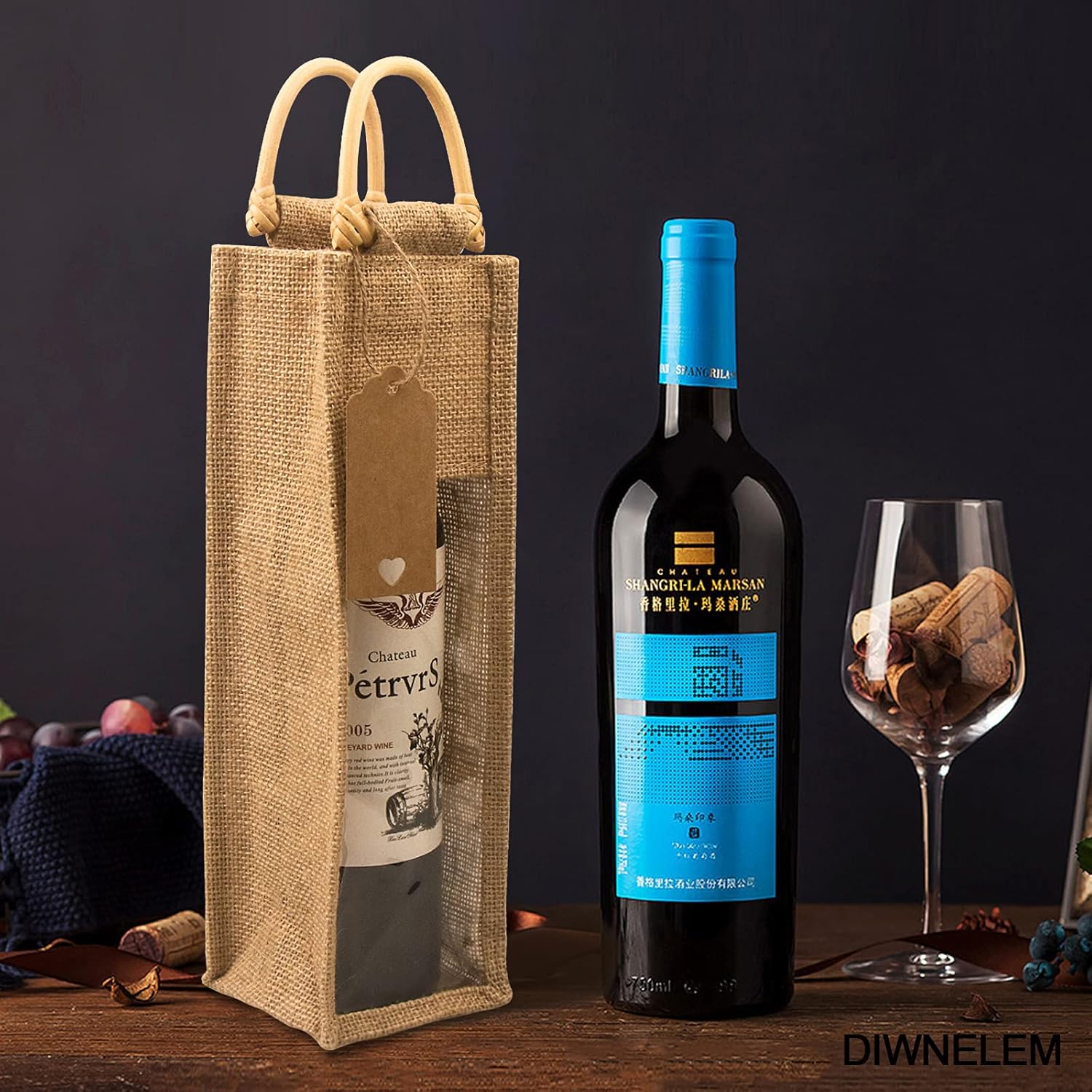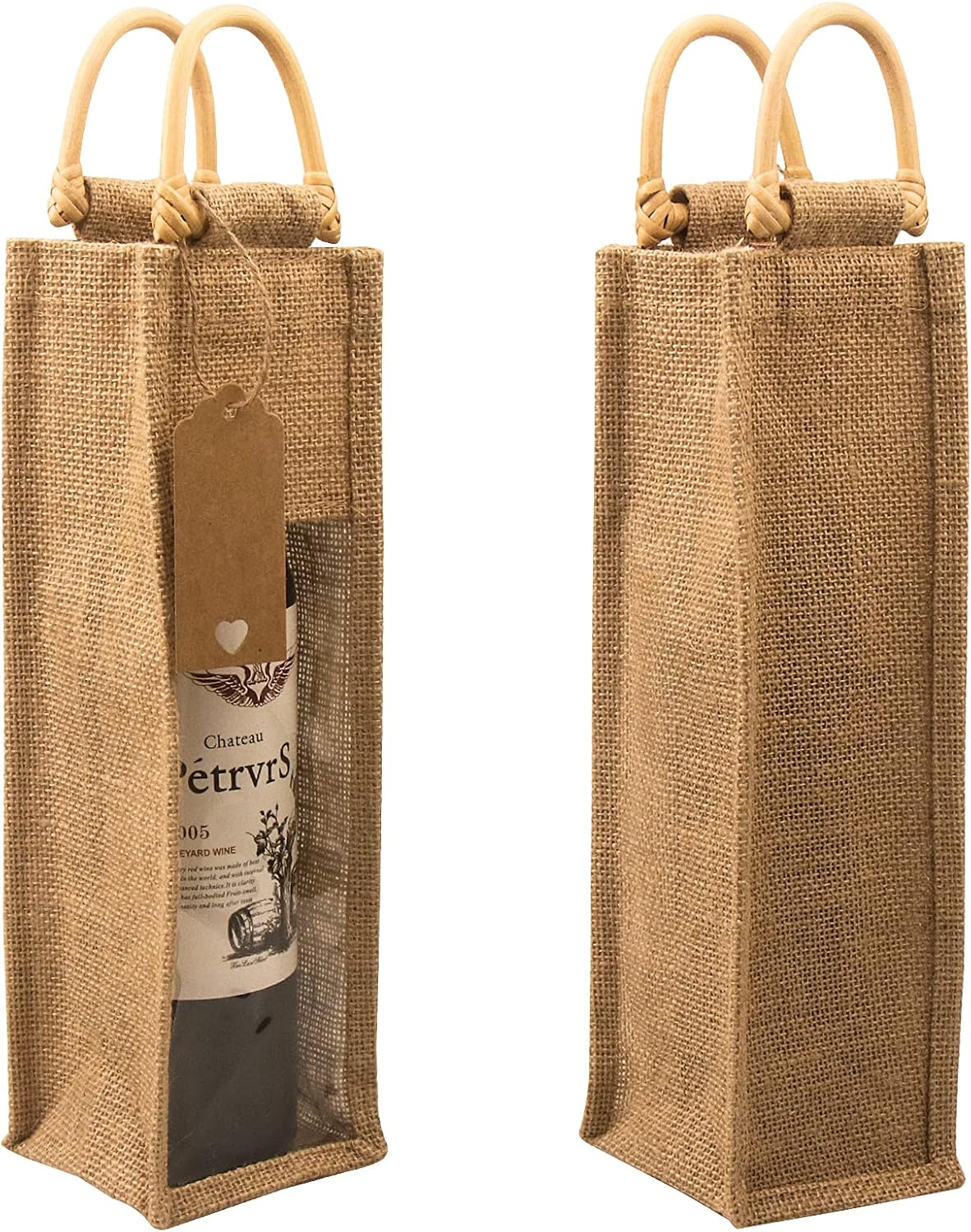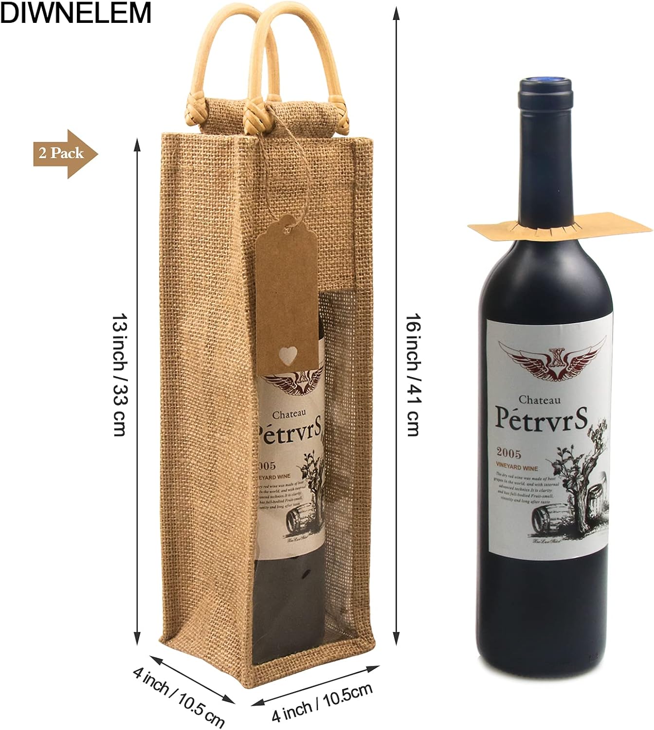 2pcs ONE BOTTLE: 2 Wine gift bag,4 pcs kraft paper tags,4 pcs bottle tags,2 m hemp rope.