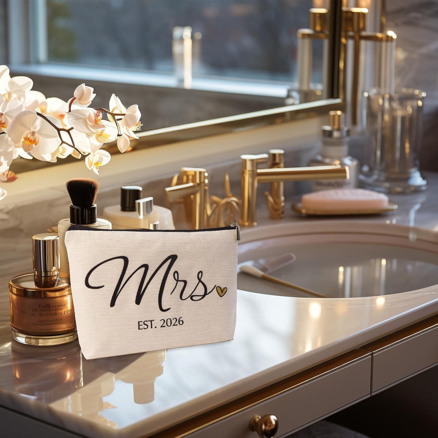 - 【Compact & Multi Purpose Storage】 Measuring 9”x7”x2”, this lightweight bride makeup bag includes an inner zipper pouch for phones, keys, and bridal showers gift essentials. Use it as bachelorette bags, bride accessories for bachelorette party, or wedding accessories for brides—ideal for travel, honeymoons, or storing bridal shower party favors and bachelorette party accessories.