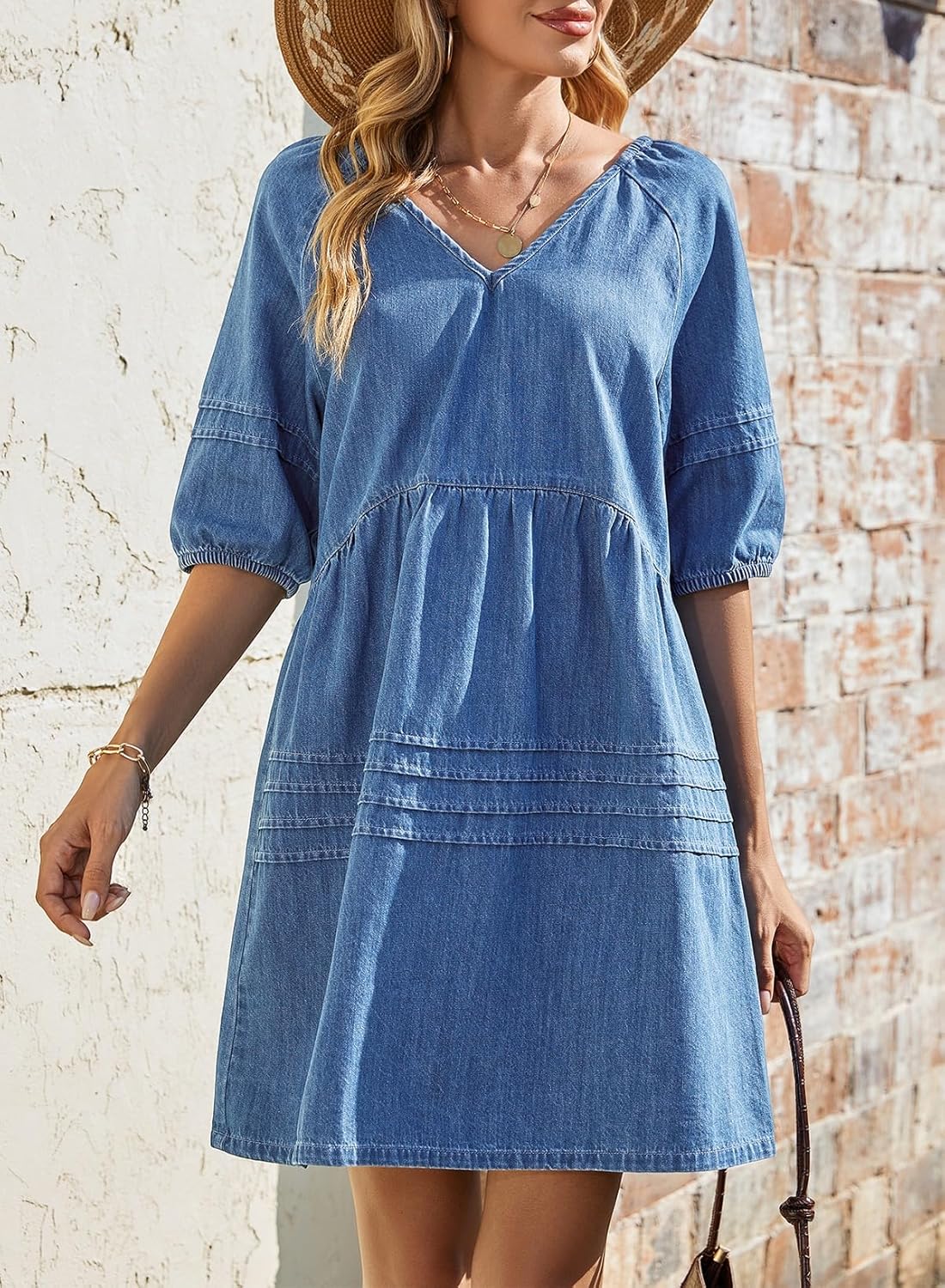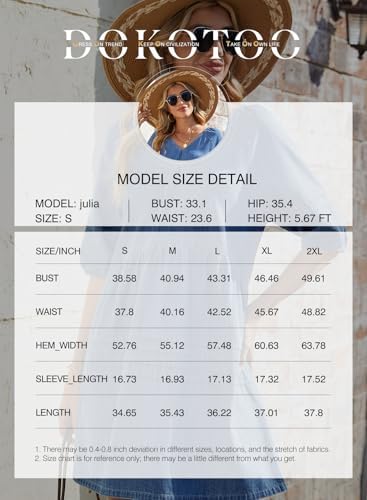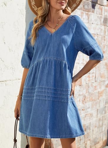 - Fabric: Dokotoo casual summer denim dresses is made with high-quality and skin-friendly fabric. It offers a soft, lightweight, and comfortable wearing experience. The denim mini dress can show off your legs, the puff sleeves add a touch of whimsy. Keep you trendy and eye-catching at any time and anywhere