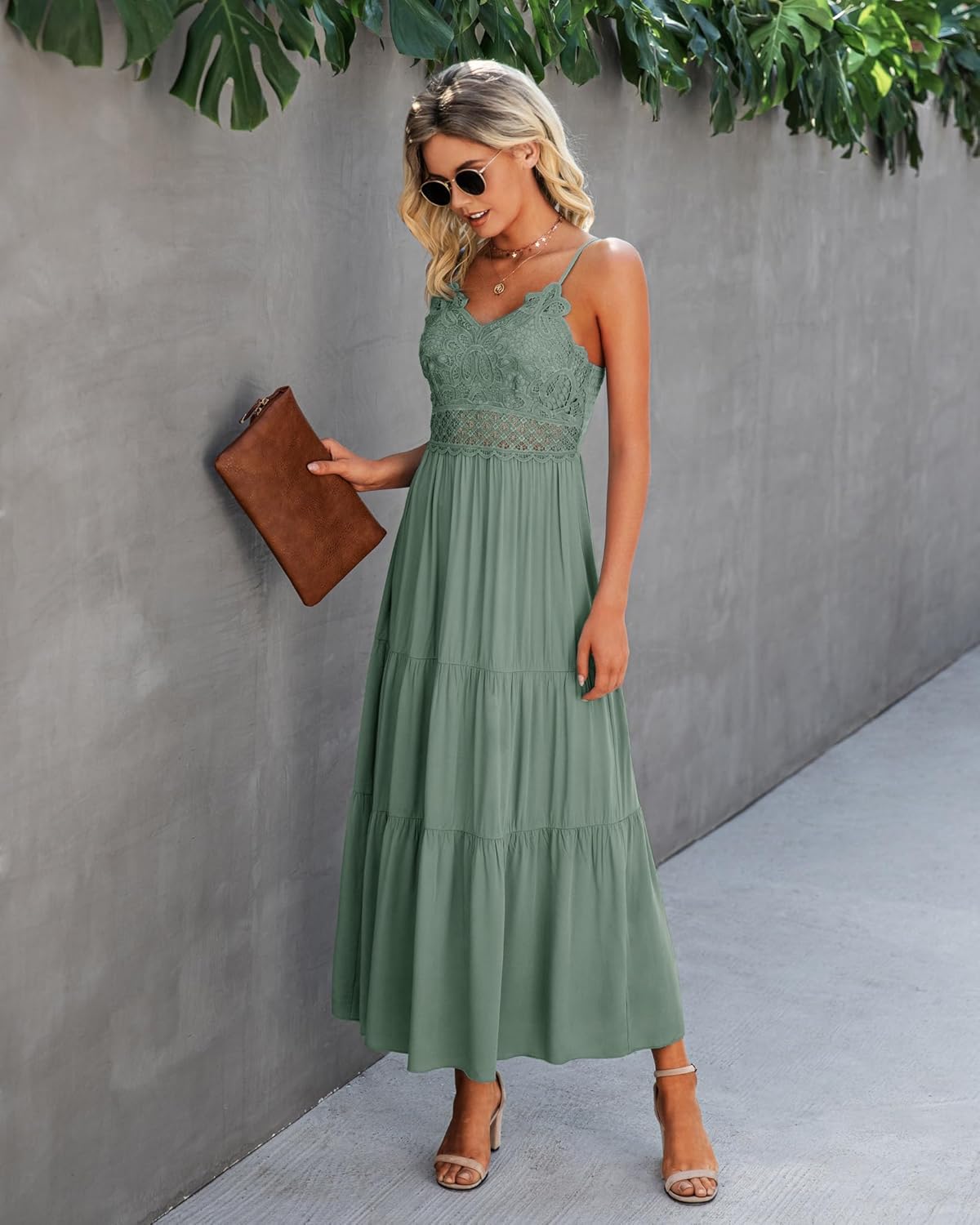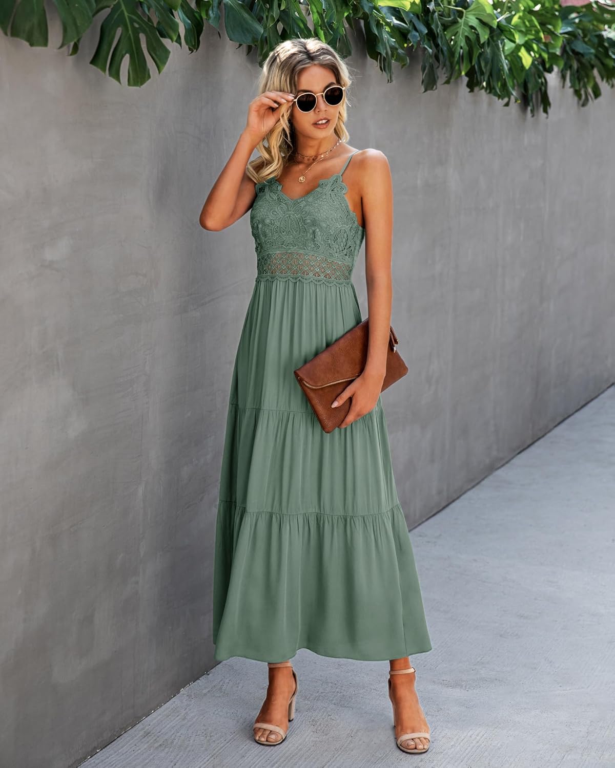 • Features: The stunning lace top dress is designed with v-neck, lace bralette maxi dress, lace bodice maxi dress, casual summer dress, v neck lace maxi dress for women, spaghetti strap lace maxi dress, back smocked dress, maxi lace crochet dress for women, lace v neck ruffle maxi dress, and high waist design with flowing skirts women’s maxi dresses for summer, beach maxi dress for women flattering enough sexy and casual.