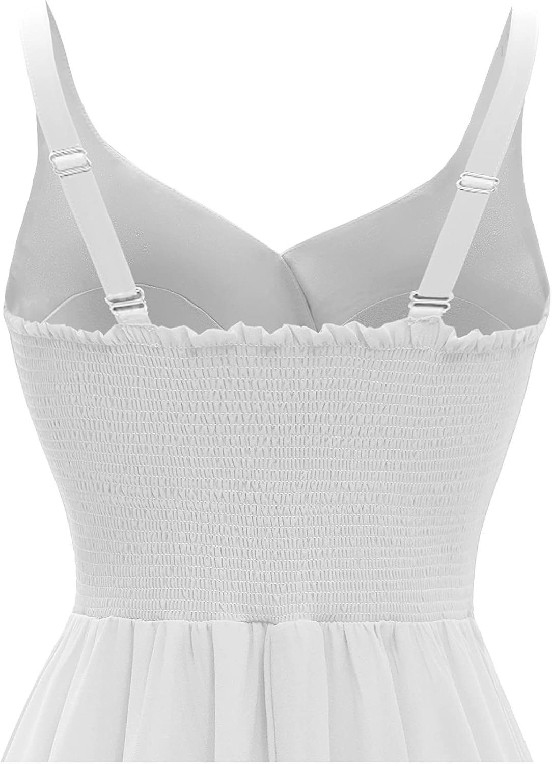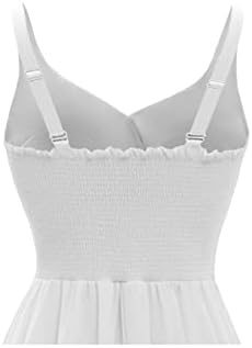 - Features: Cross V-Neck, Spaghetti straps, Adjustable back, Cross ruffled front, Swing skirted, Sleeveless, Knee Length.