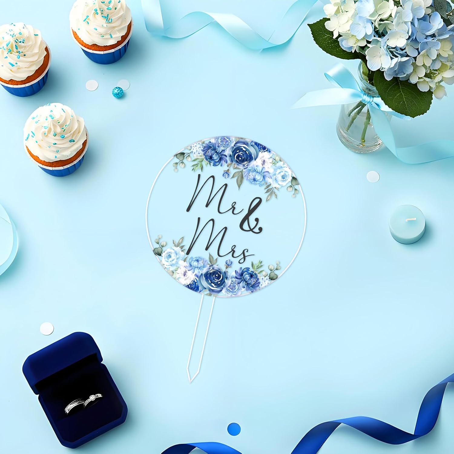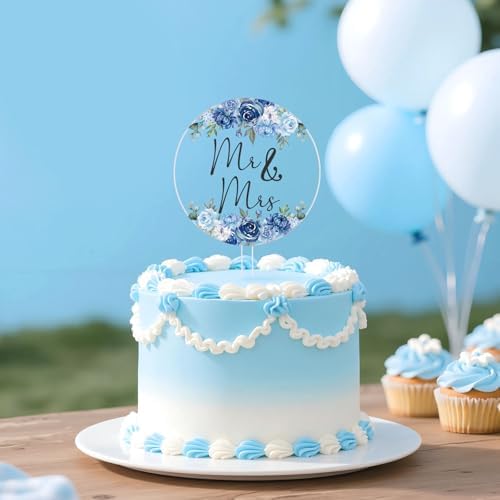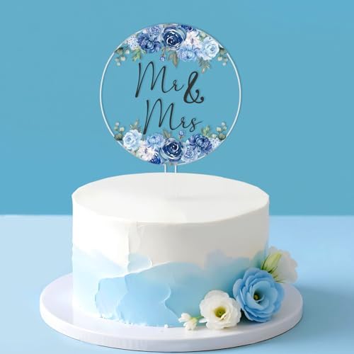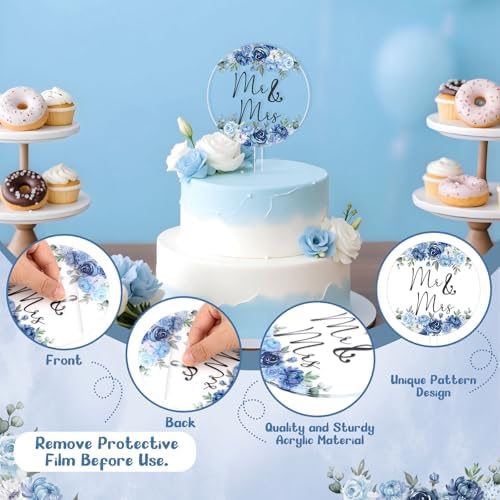 - Usage: No assembly required. Insert the something dusty blue floral “Mr & Mrs” cake topper into the cake, and adjust the height for optimal display.