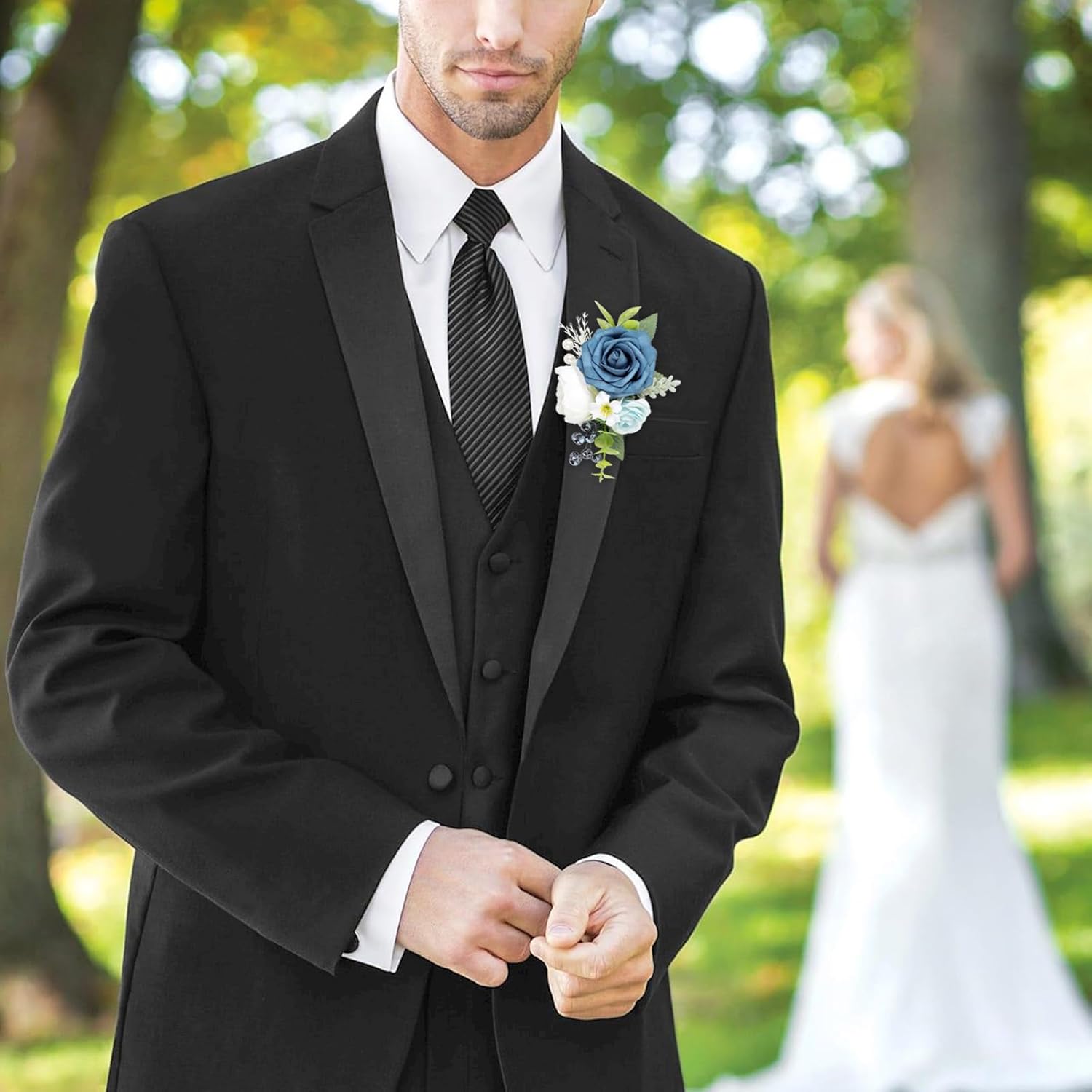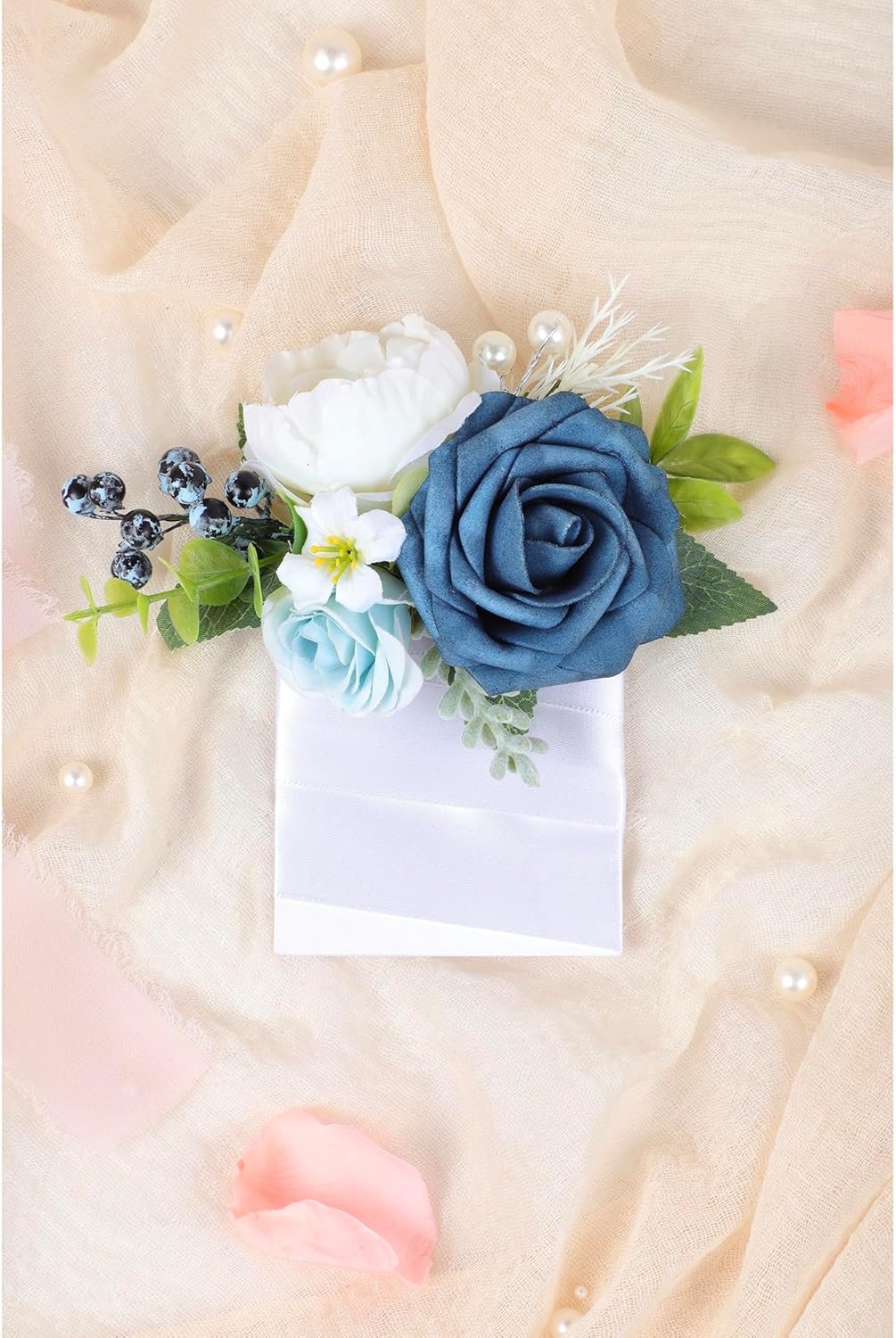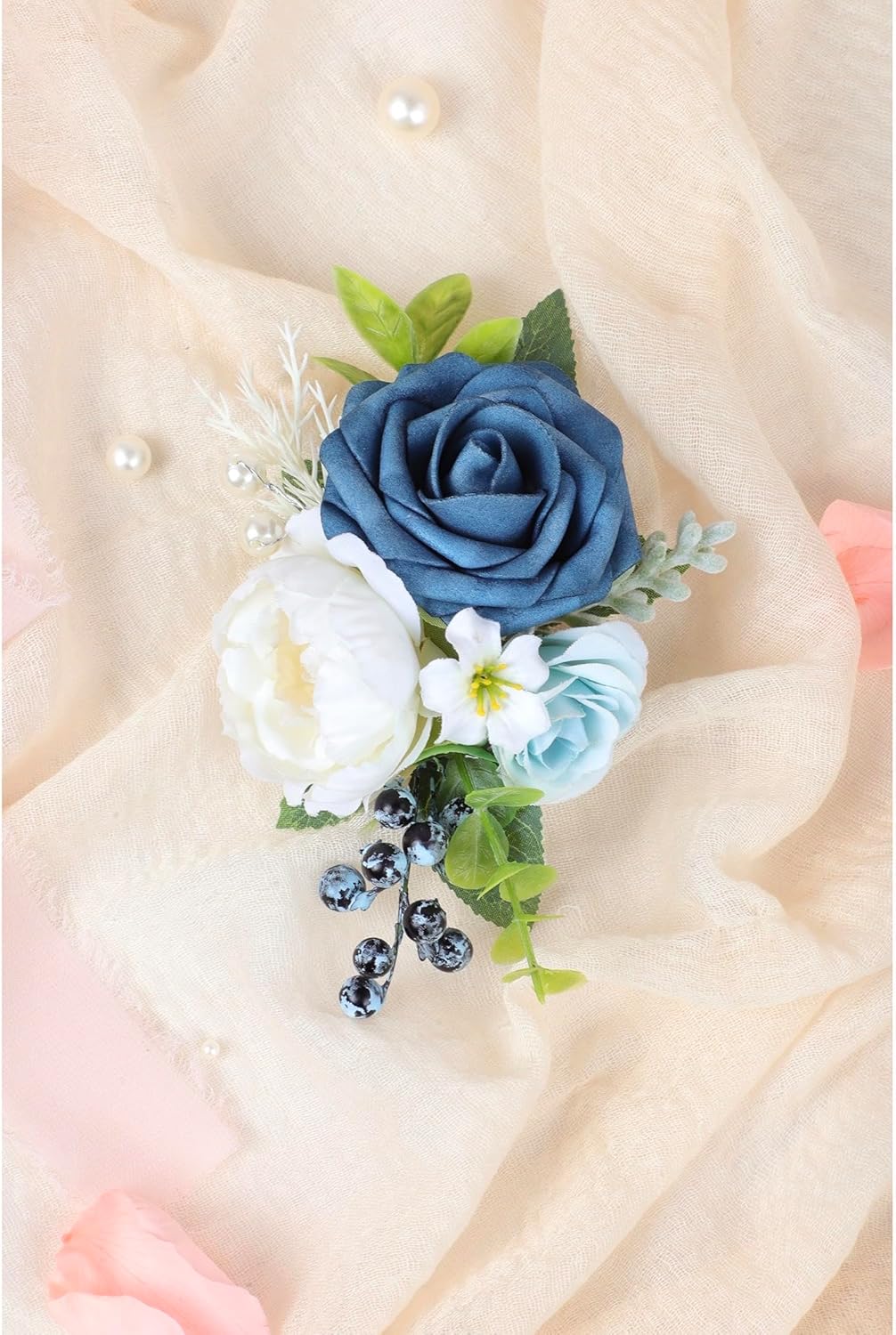 - 【Blue Boutonniere】: Roahosy pocket boutonniere is made from real-looking artificial navy blue rose, white peony, light blue flowers, enhanced by greenery, blueberries and fake pearls, creates a lifelike appearance that exudes sophistication. Each pocket boutonniere is meticulously handcrafted with attention to detail, they are ideal finishing touch for any occasion