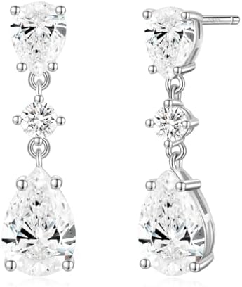 • Stylish: These stunning earrings are crafted with two teardrop simulated diamonds and a round-cut CZ stone connector, exhibiting the brilliance and clarity of real diamonds. They reflect light beautifully, enhancing your facial features and adding to your overall elegance. These earrings are an excellent choice for elevating your personal style