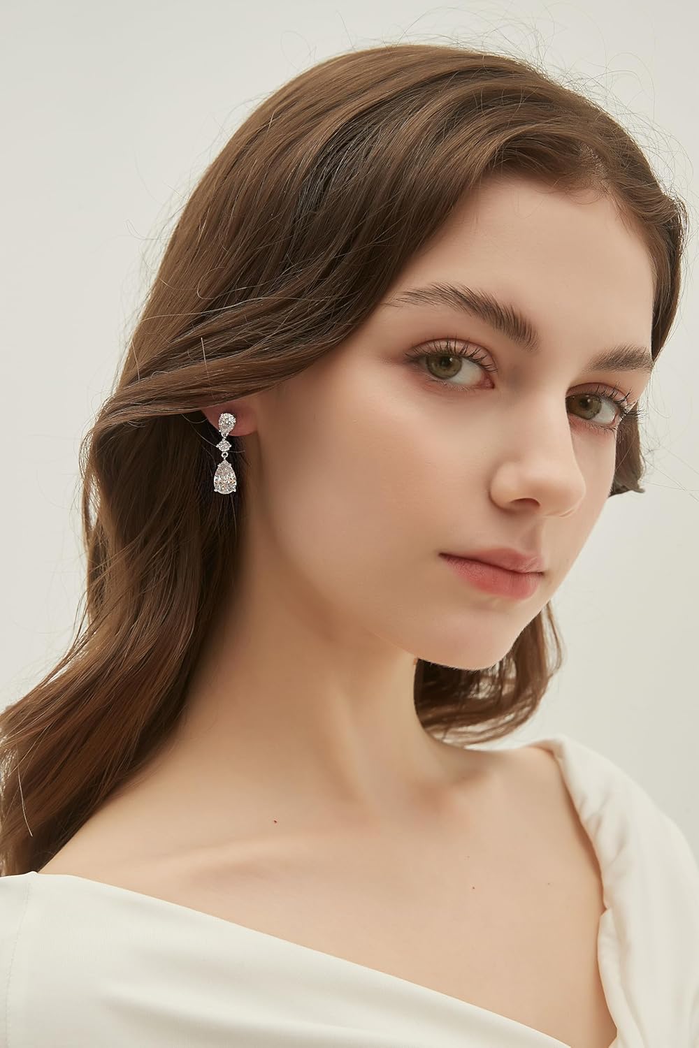 EAMTI Wedding Earrings for Brides Dangle Cubic Zirconia 925 Sterling Silver Post Engagement Earrings for Women