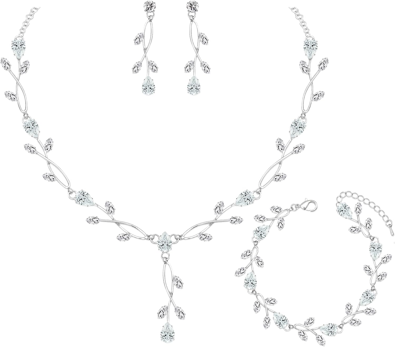 Easy To MatchThe Jewelry Set Is Perfect For Any Occasion To Wear: Party, Ball, Wedding, Anniversary, Engagement, Graduation, Events Or Any Other Special Occasions. Suitable For Matching Evening Dress, Wedding Dress.Ideal Gift ChoiceThis Jewellery Set Comes In Jewelry Gift Box. A Good Birthday / Wedding /Homecoming / Prom / Graduation / Mother’s Day / Thanksgiving Day / Christmas / New Year / Valentines Day Gift For Yourself, Mom. Aunt, Wife, Sister, Niece, Daughter Girlfriend,Women Friends.AAAAA Cubic ZirconiaOur Jewelry Set Embellished With AAAAA White Cubic Zirconia. Shiny Forever As Diamond Stone. Reflect The Sunshine And Light, Sparkle From Any Angle Viewing. Make You More Charming.Exquisite CraftsmanshipWe Choose High Quality Materials And Prioritize The Most Stringent Production Processes. Each Jewelry Is High Polished, Hypoallergenic & Sparkle. Upgraded Clasp Make It Easy To Open And Close.