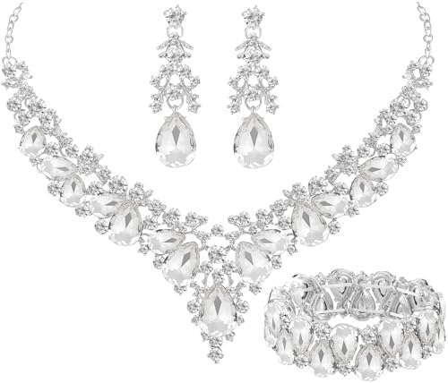 - Bride silver sparkly bling white crystal statement choker necklace for women: Women silver gala jewelry set is gift packaged, which is suitable for Wedding / Engagement / Valentines-day / Anniversary / Prom / Dinner party / Birthday party, any occasion you want to be more charming.