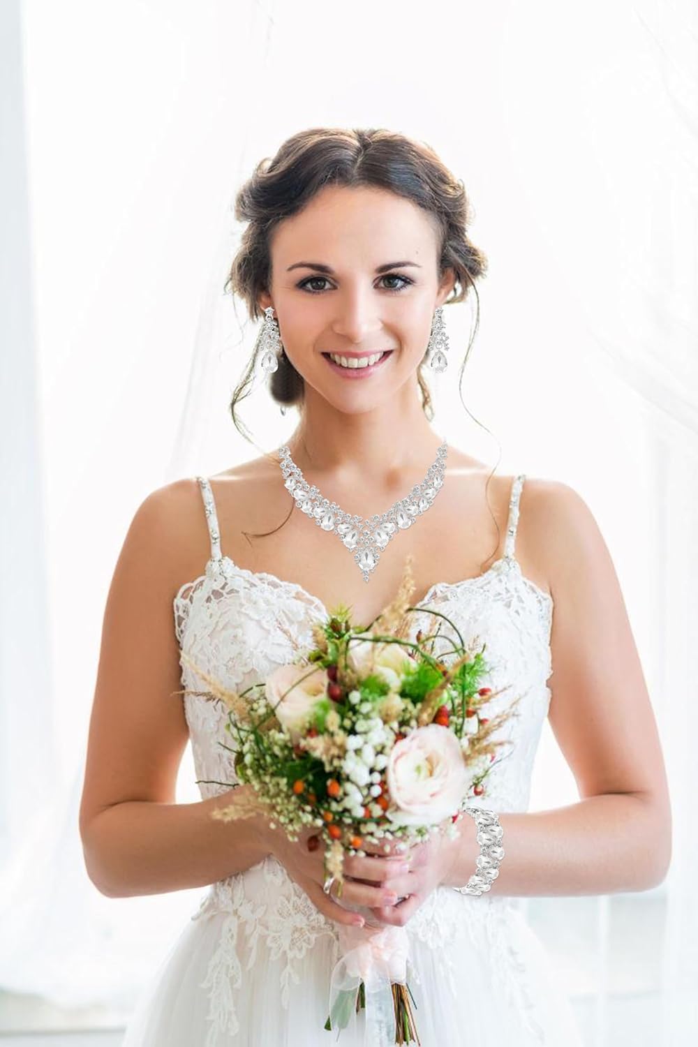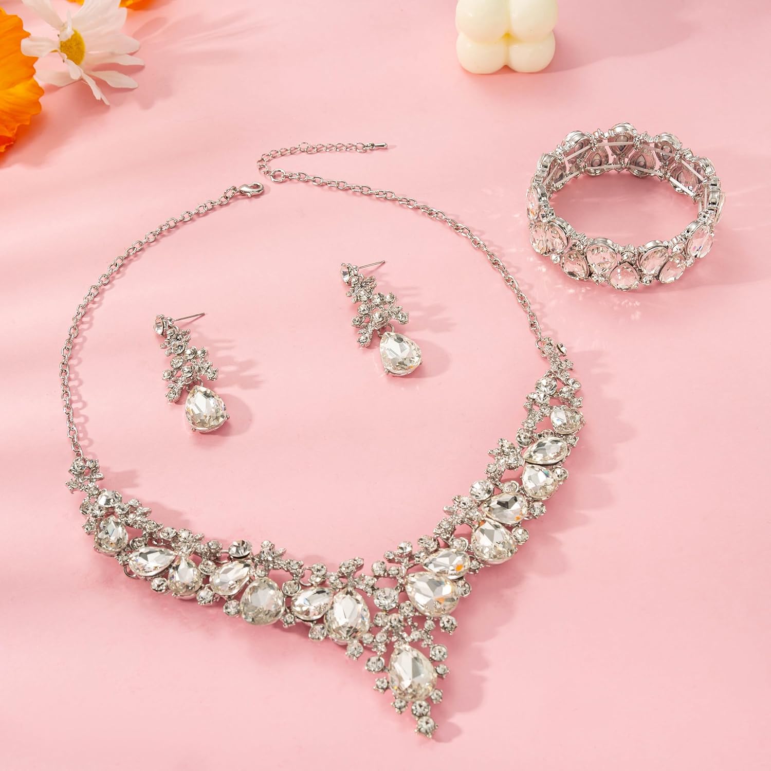 - Occasions: Bride luxury necklace earrings bracelet jewelry set for brides bridesmaids is suitable for Wedding / Engagement / Valentines-day / Anniversary / Prom / Dinner party / Birthday party, any occasion you want to be more charming.