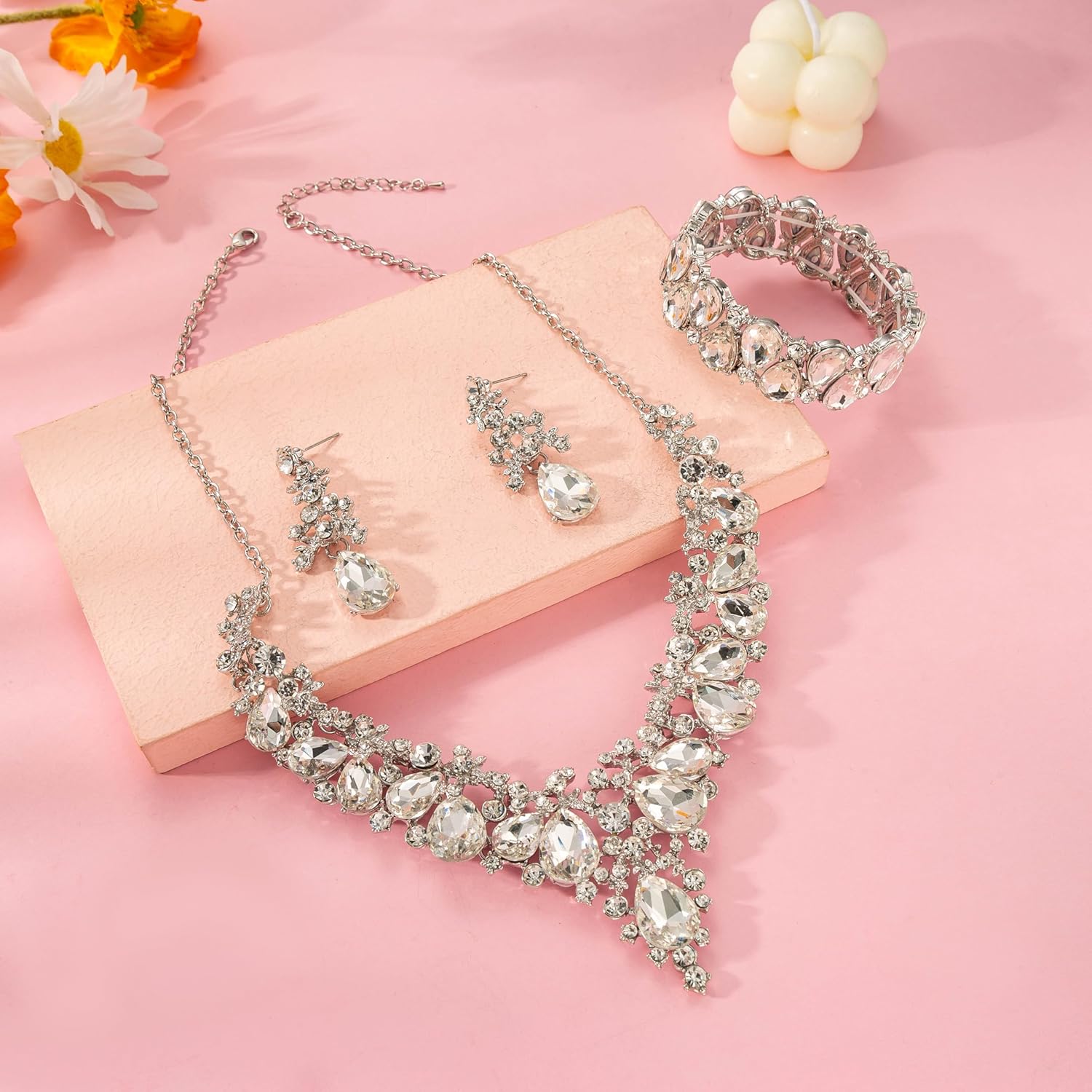 - Bridesmaid jewelry set for wedding: Formal bling jewelry for women evening wear can always keep pace with fashion, never goes out of style. Easy to match any outfits. It makes you impressive anytime any occasion. You are indispensable to the world. Gift Options: Each set comes with a gift box. Ready for gifting and makes a meaningful gift for your loved ones and for any occasions. e.g. Lover, girlfriend, fiancee, wife, mother, couple, Valentine or just a friend,etc.