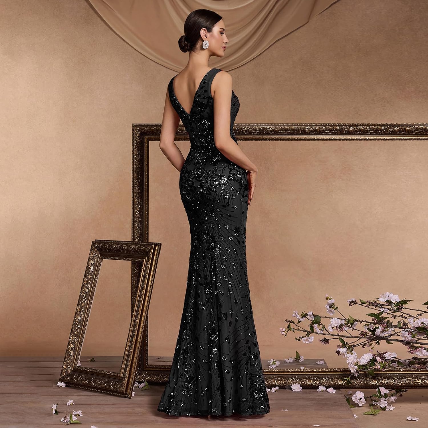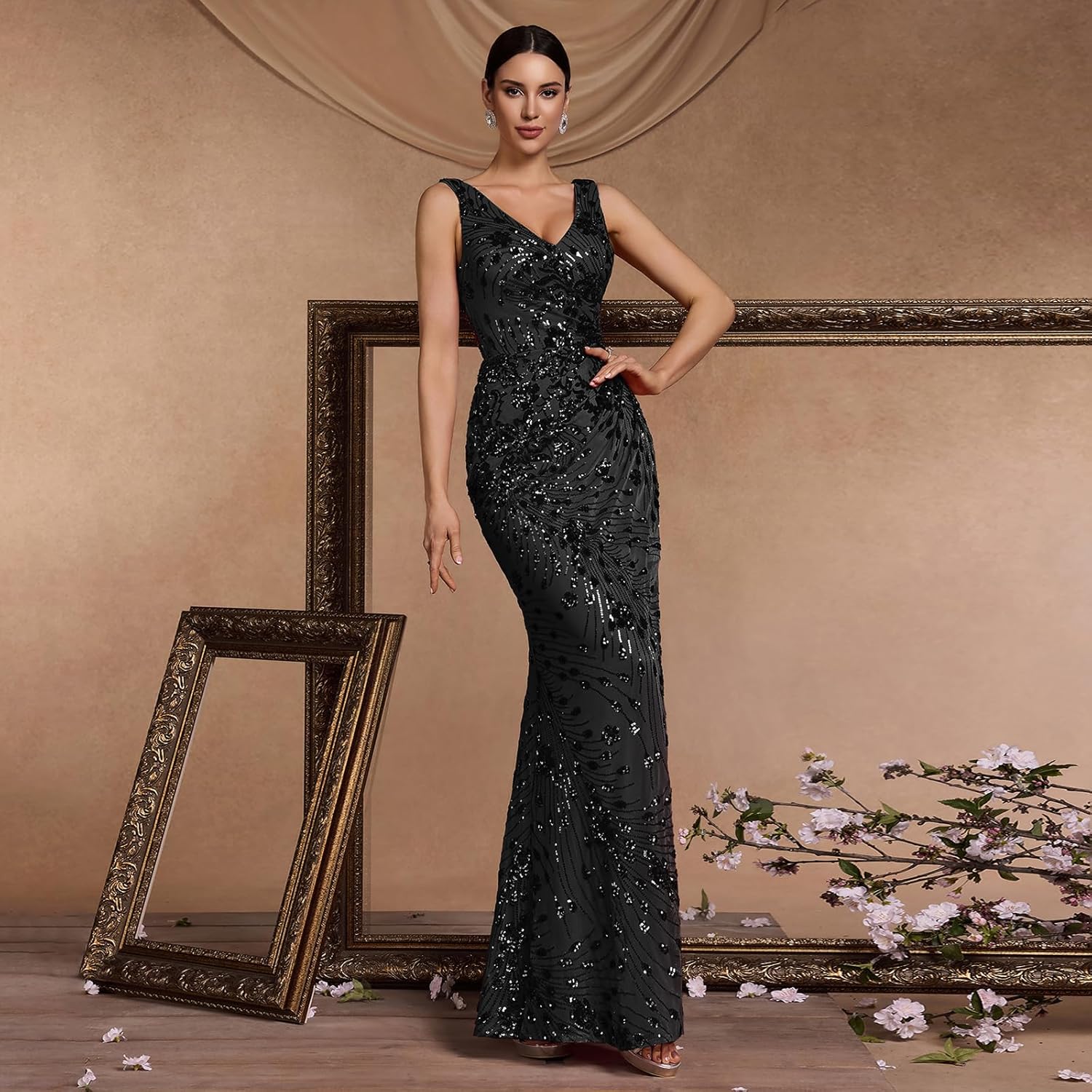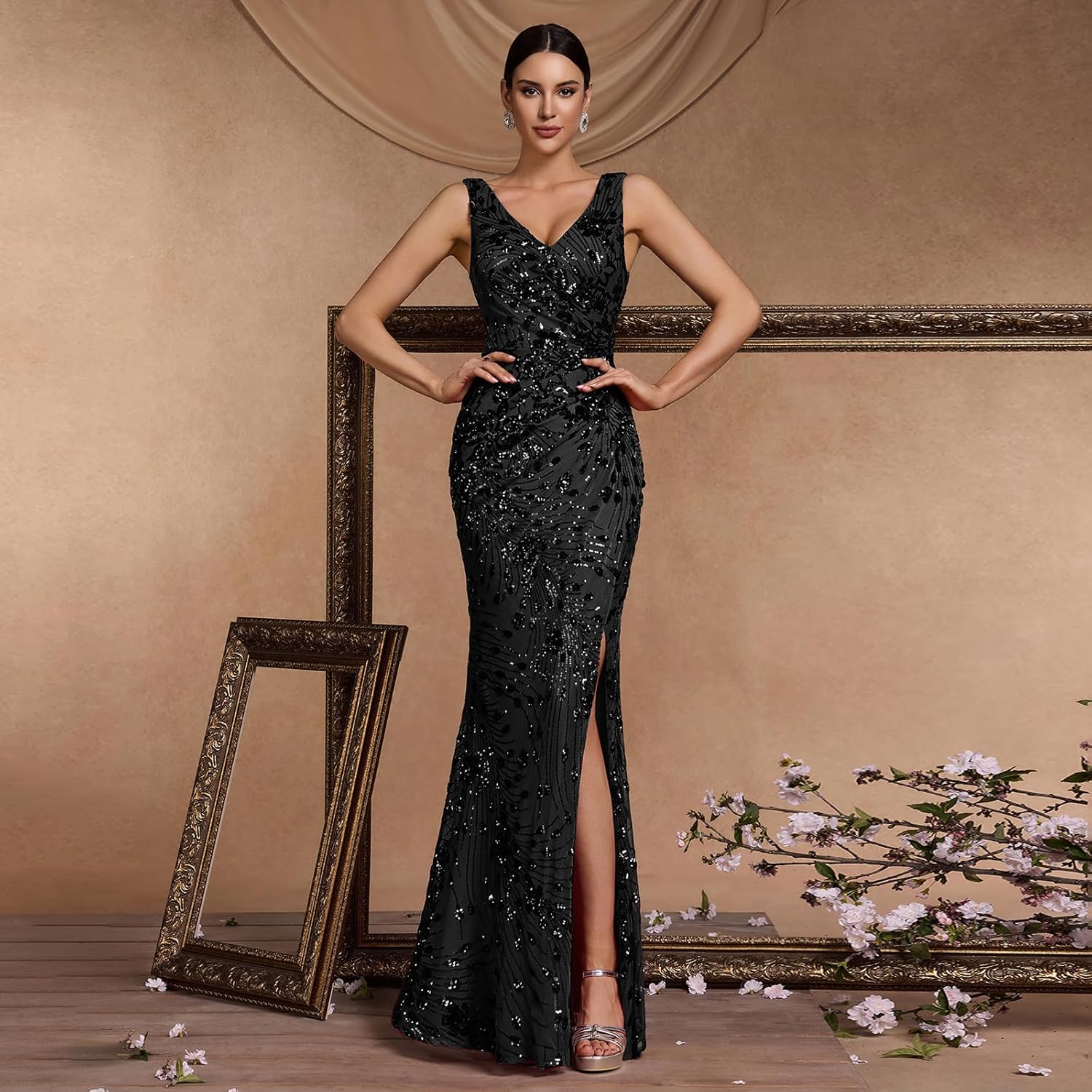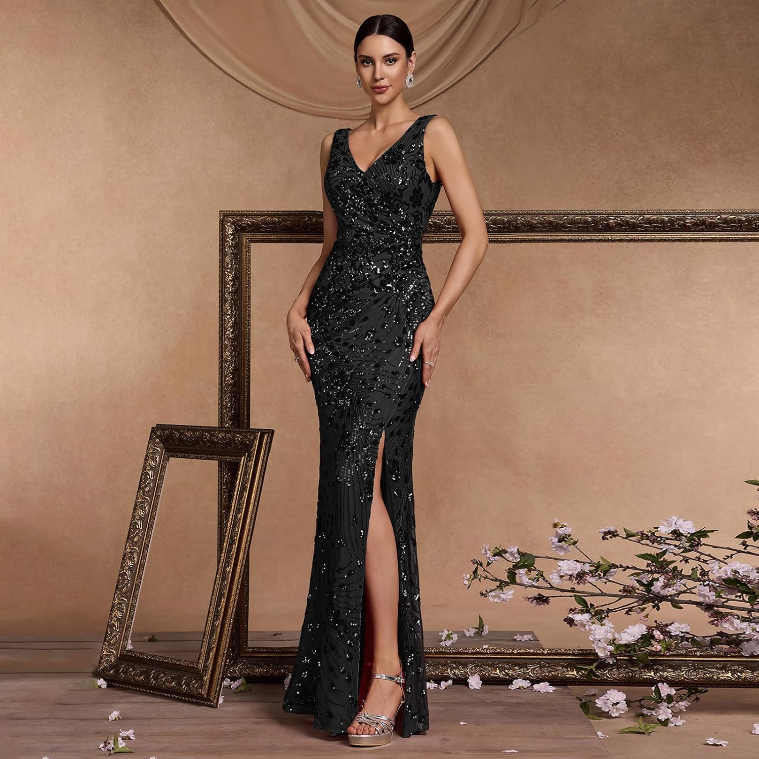 • ✨SOPHISTICATED & GLAMOROUS DESIGN – Experience timeless elegance with our expertly crafted gown. It features flattering V-neck, sparkling sequin embellishment and sleeveless design for a classic yet modern look. The show-stopping mermaid tail with slit adds a dramatic and unforgettable flourish to your entrance, ensuring you shine with every step.
