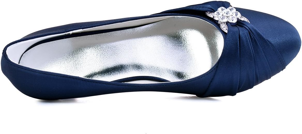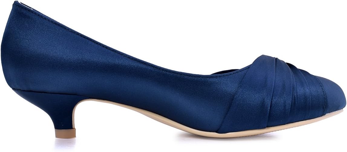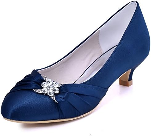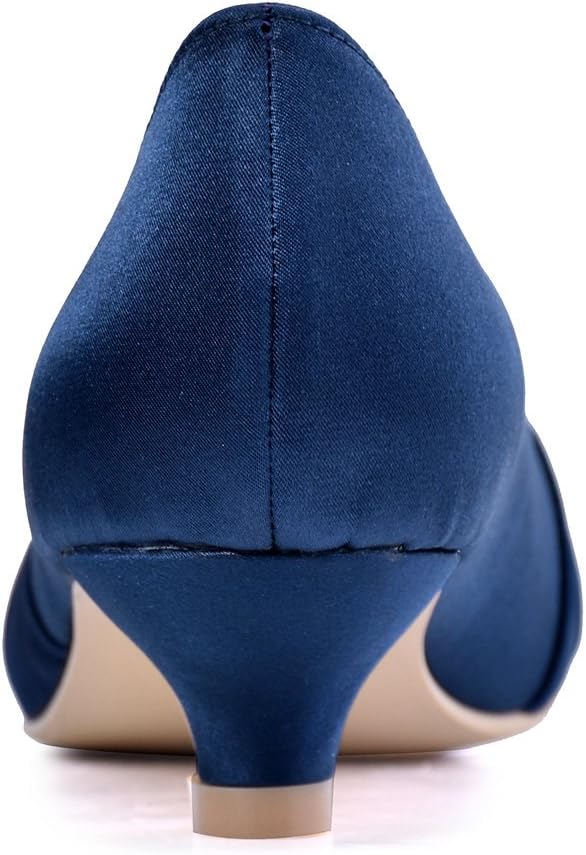 • Regal Navy Satin Low Heels: Crafted from premium high-density satin, these navy blue kitten heels feature a shimmering rhinestone flower ornament, perfect for military balls and formal weddings.