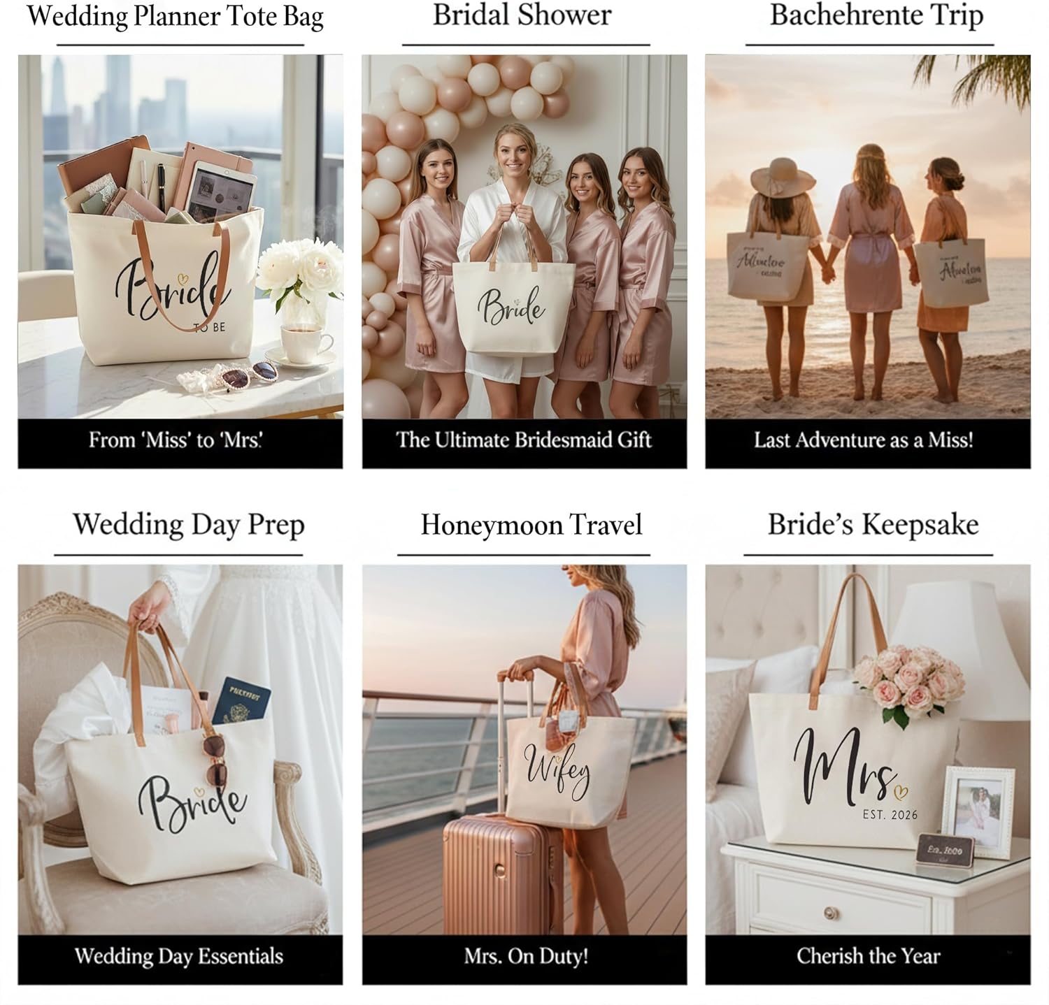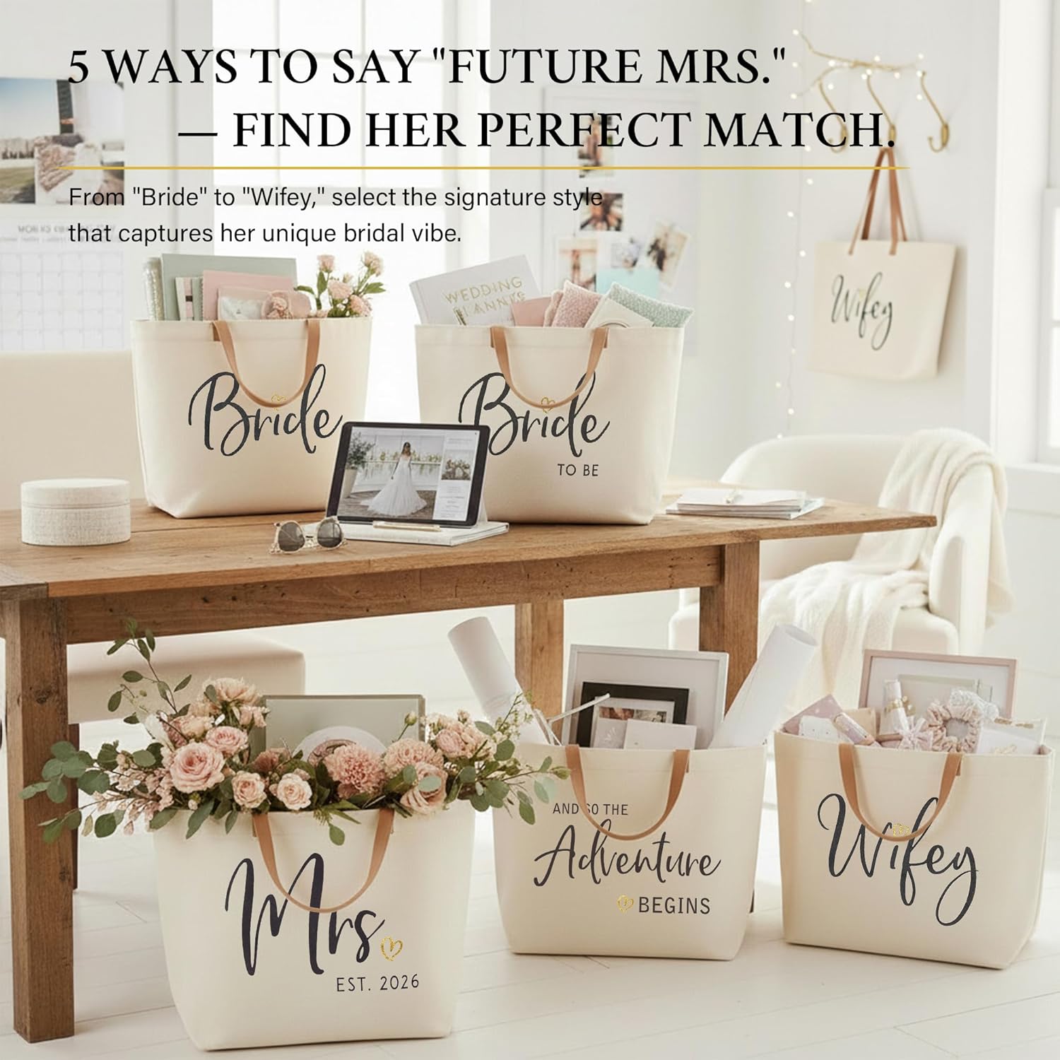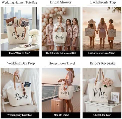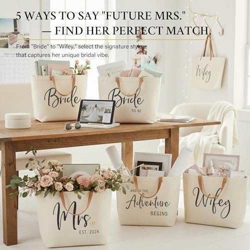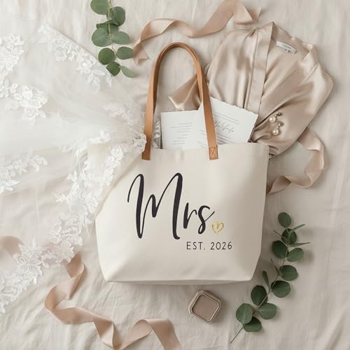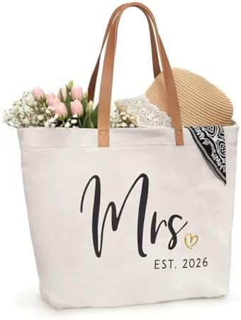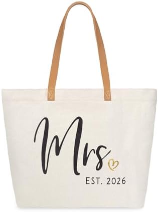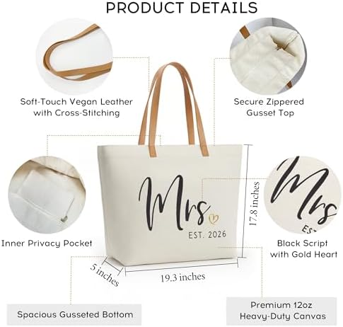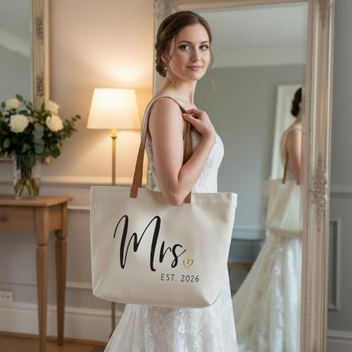 ELEGANTPARK Mrs Bag Mrs Gifts 2026 Bride Gifts Bride Tote Bag Wedding Bridal Shower Bachelorette Party Honeymoon Large Travel Canvas Totes with Zipper
