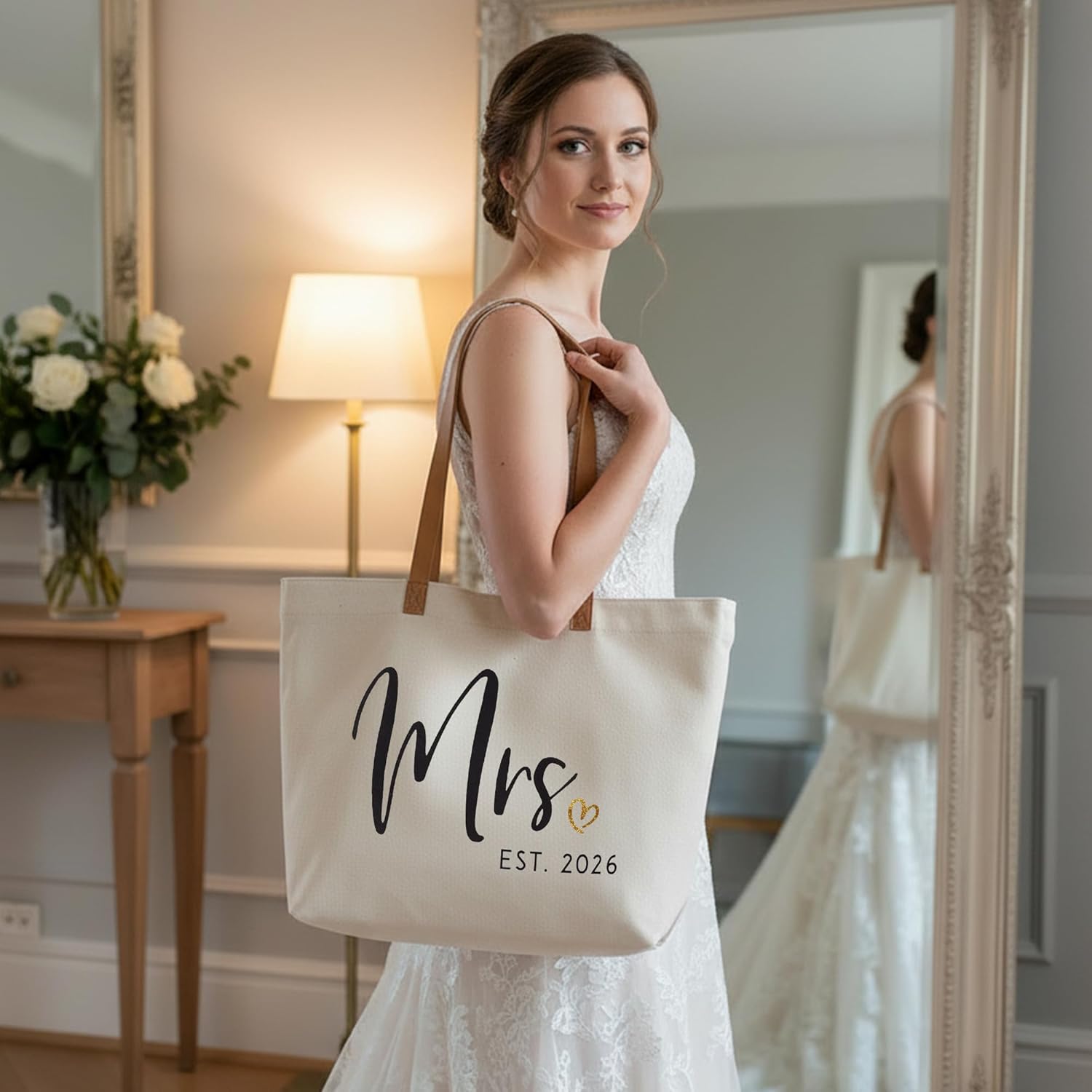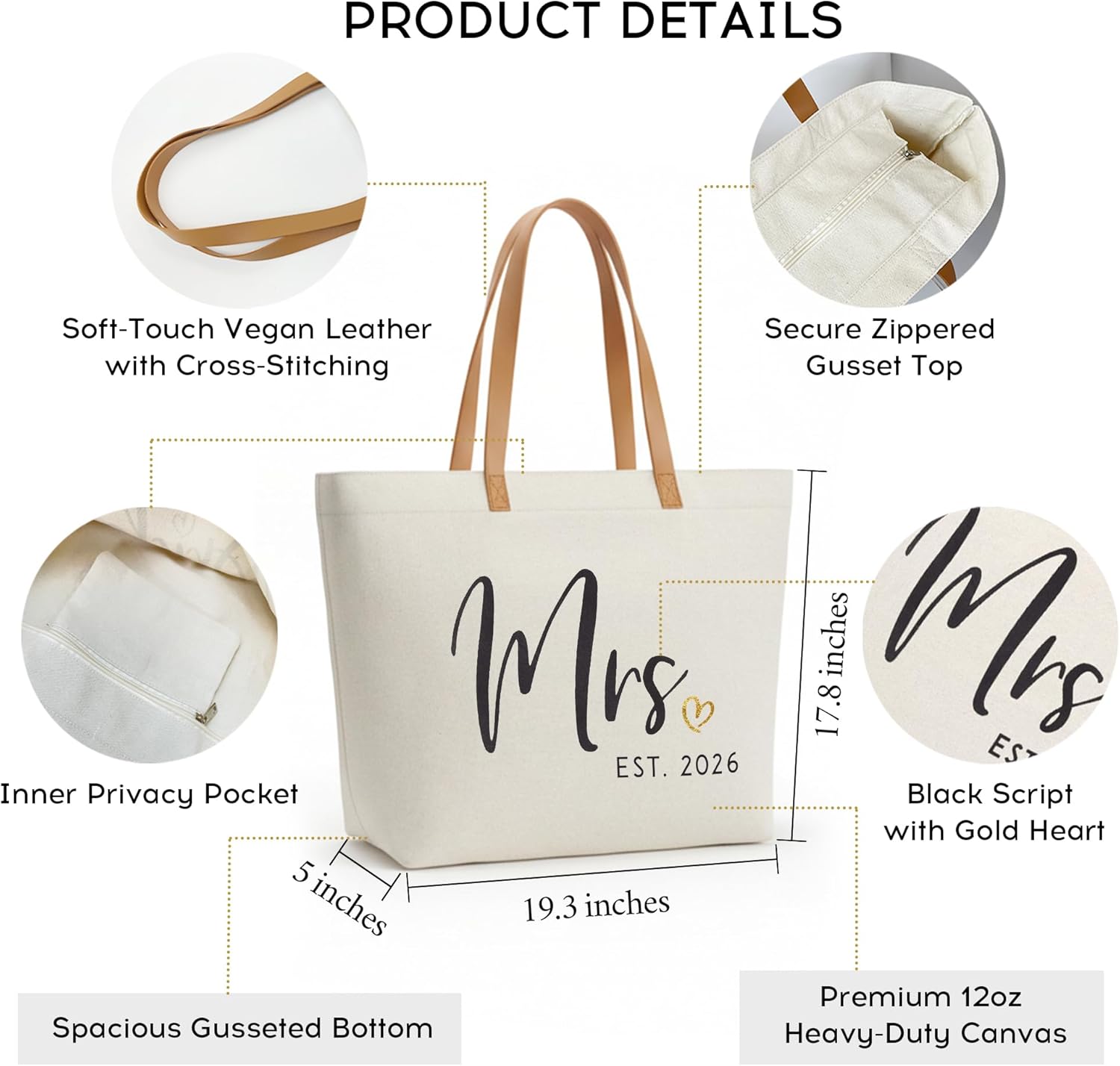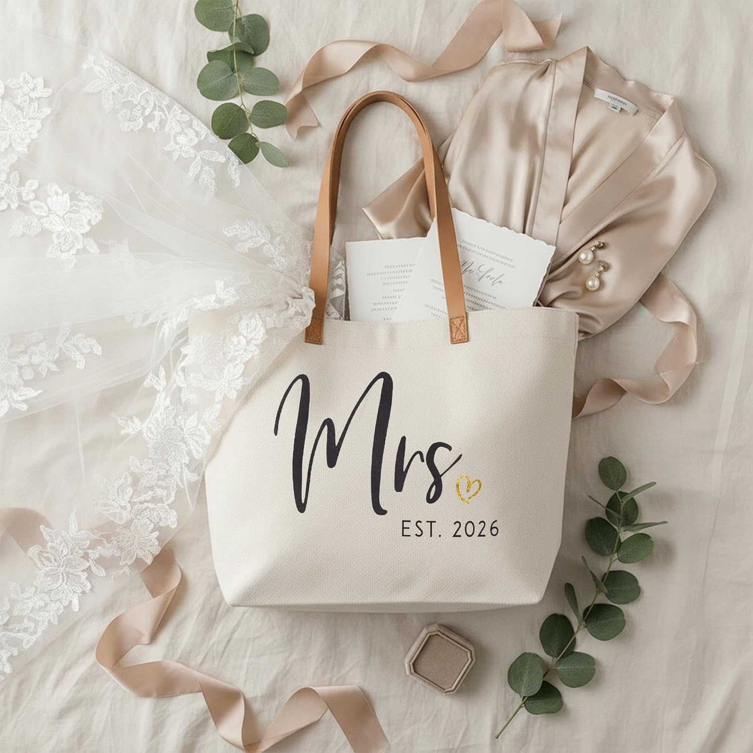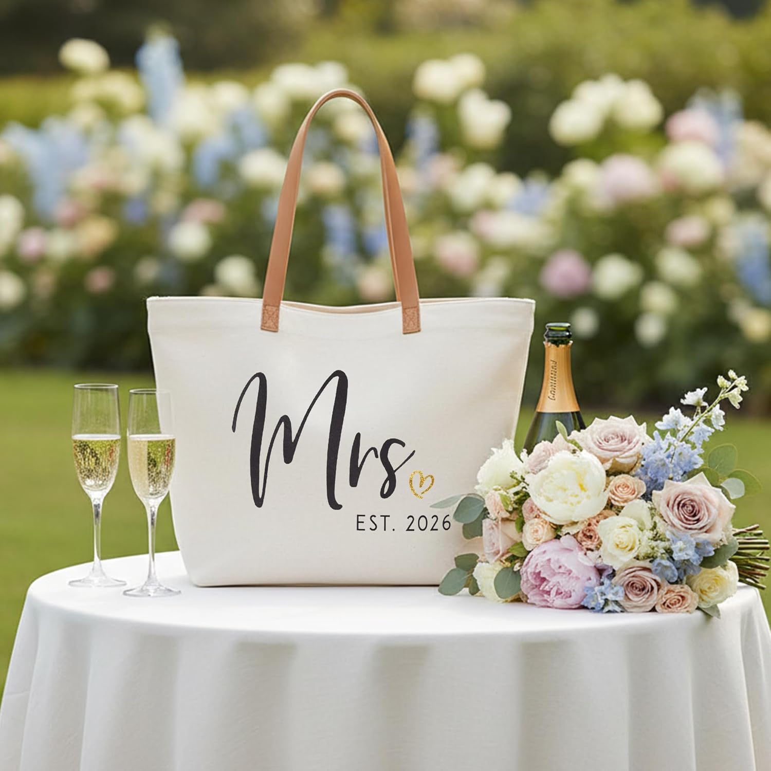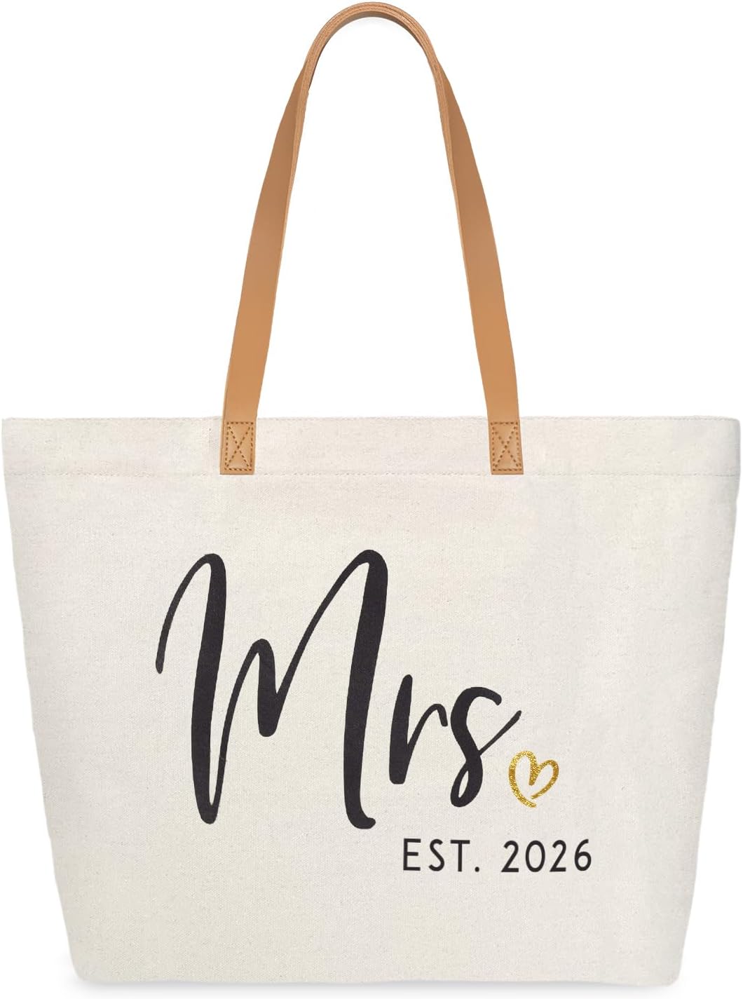 • Wedding Gifts for Bride: The mrs tote bag is decorated with the black word of “Mrs. Est 2026” and gold heart design, a thoughtful and practical wedding gift for any bride , bride-to-be, Mrs or wifey.