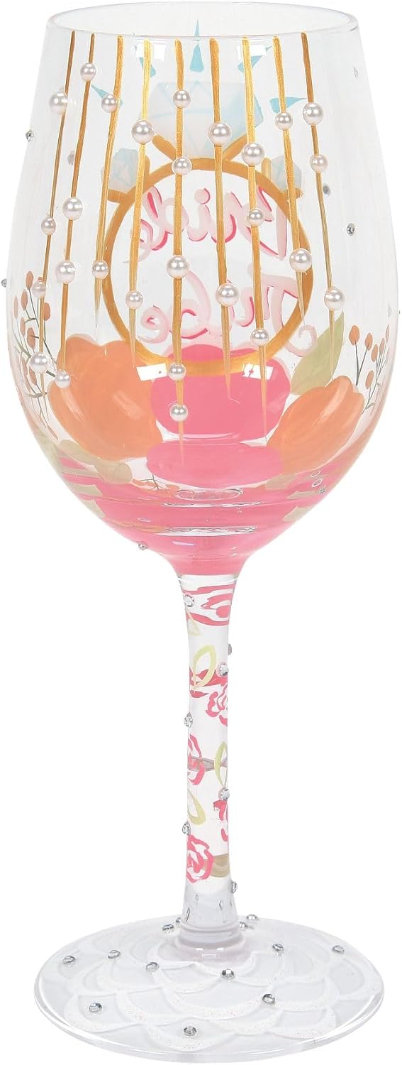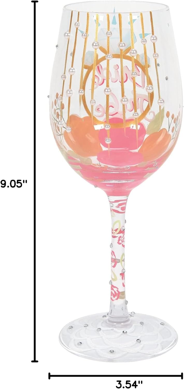 Enesco Designs by Lolita Wedding Bride Tribe Hand-Painted Artisan Wine Glass, 15 Ounce, Multicolor