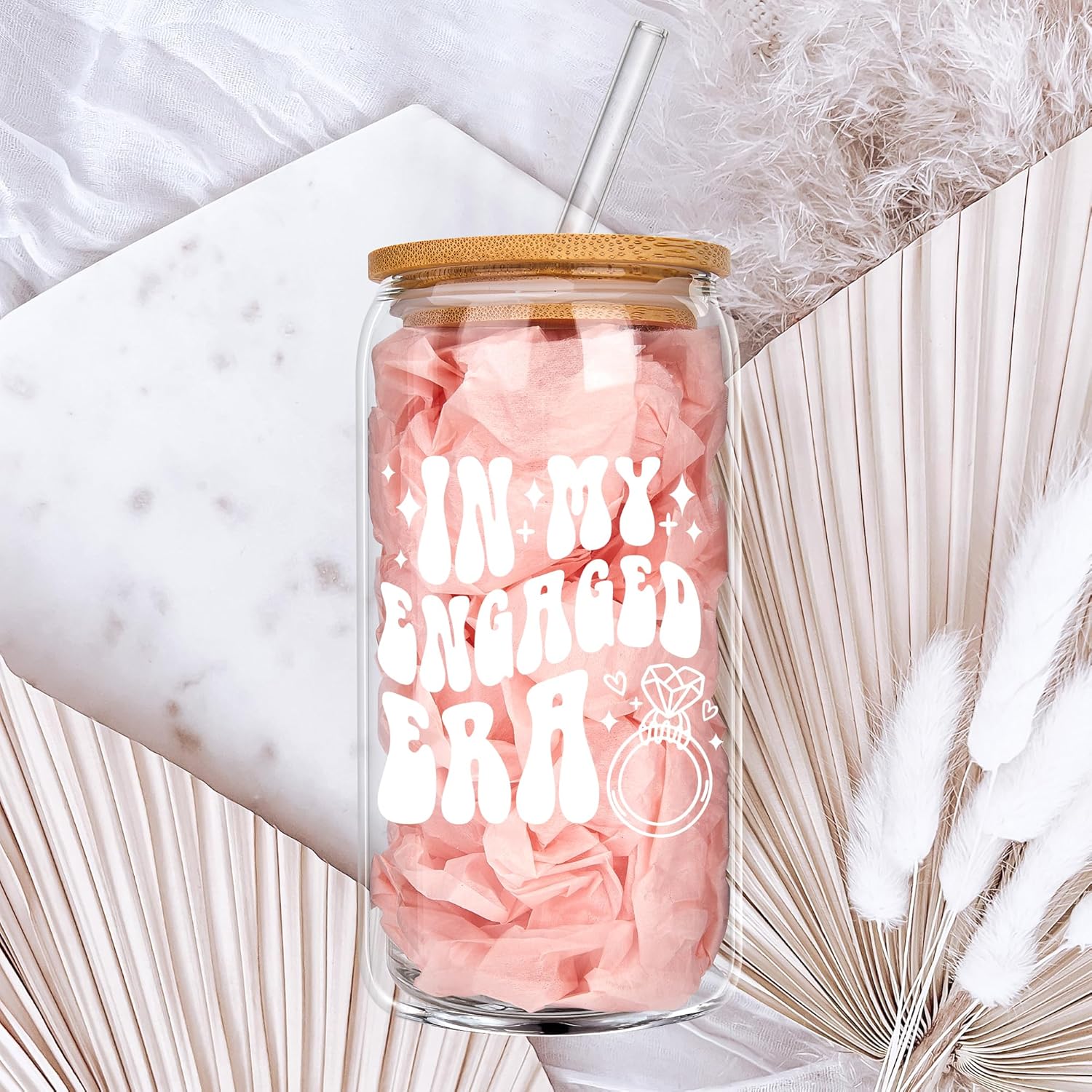 - PERFECT ENGAGEMENT GIFTS – This “In My Engaged Era” glass cup with lid and straws is the ideal gift for newly engaged women. It captures the love, commitment, and excitement of this special time, making it perfect for the bride-to-be, fiancée, or newly engaged friend.