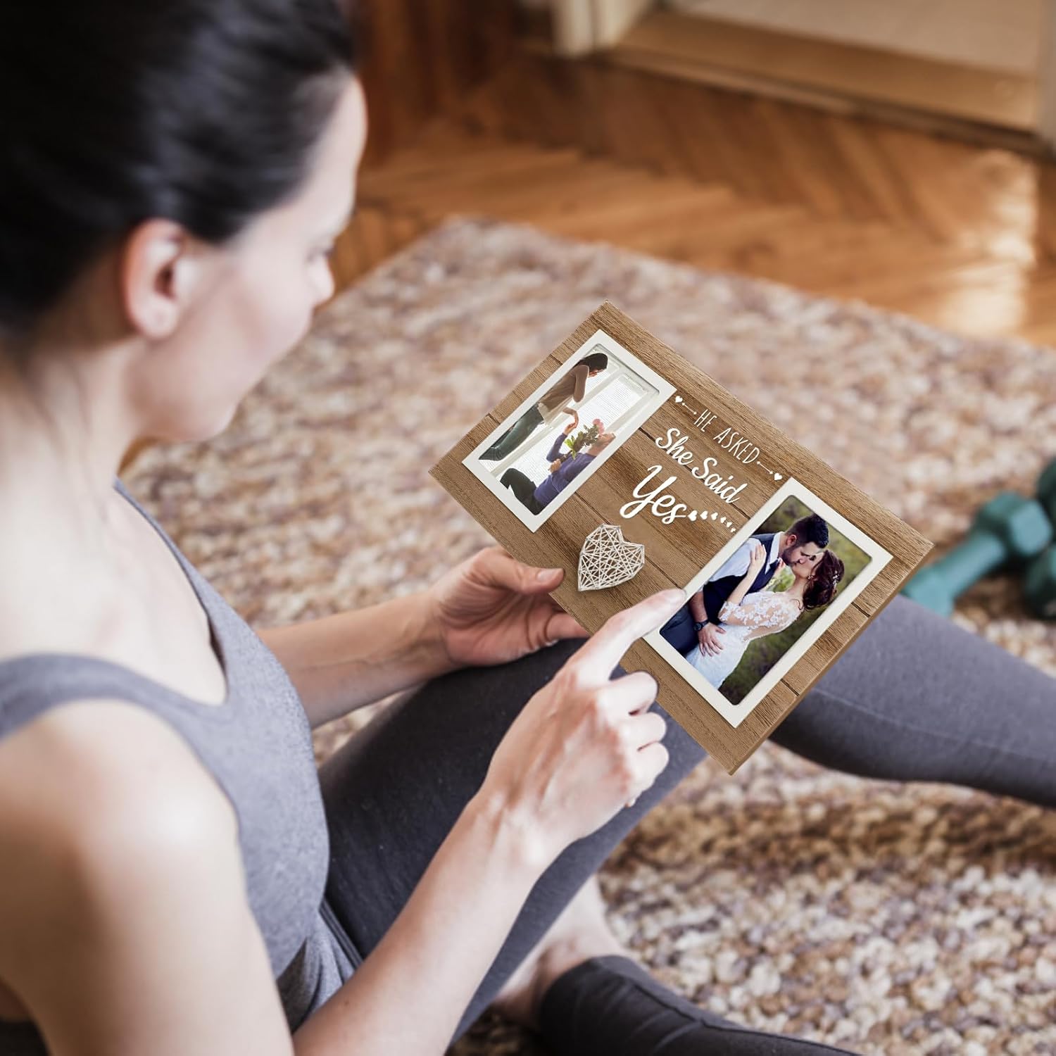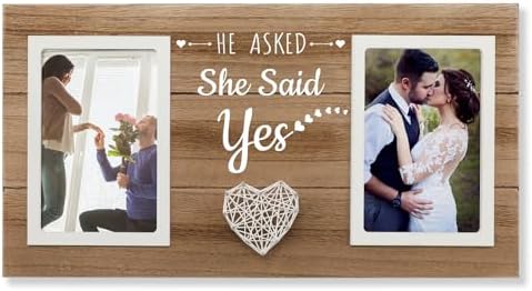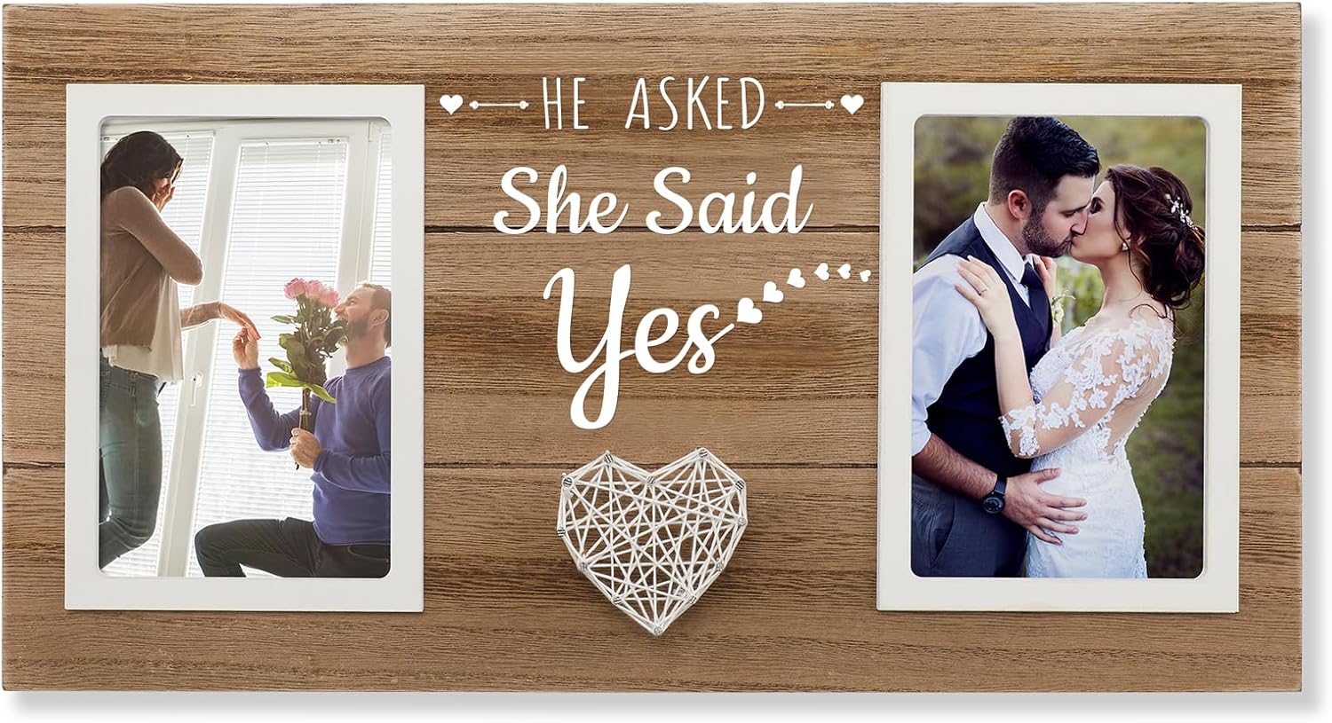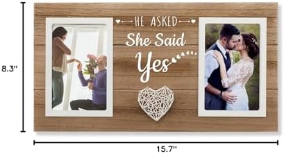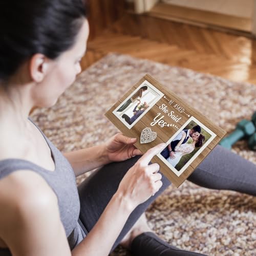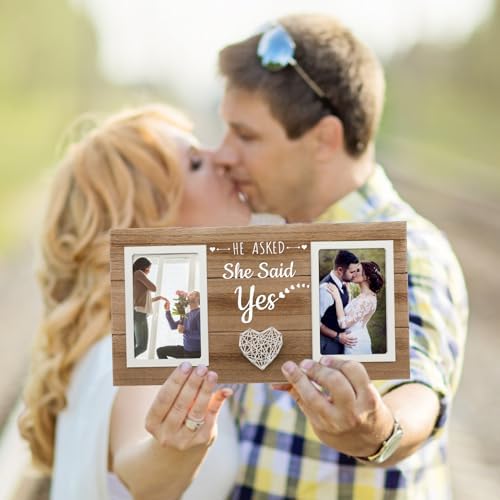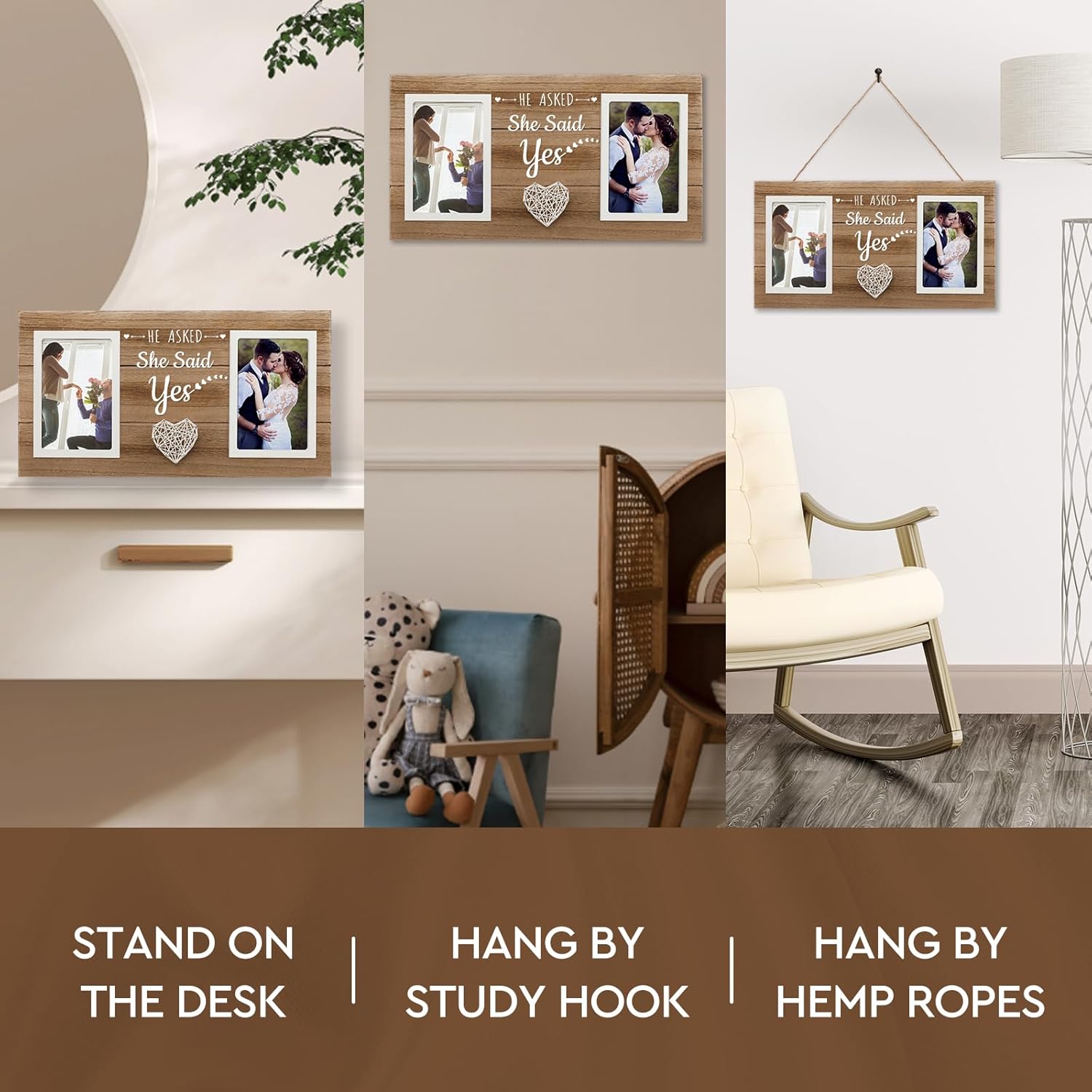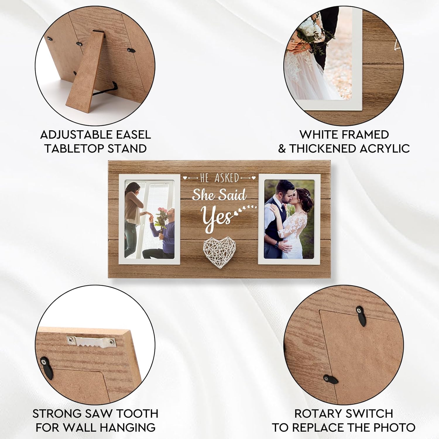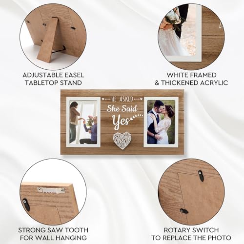 Engagement Gifts for Couples Picture Frame, He Asked She Said Yes Promposal Gifts, Engagement Gift for Her Photo Frame, Holds 2pcs 4×6 Inches Photos