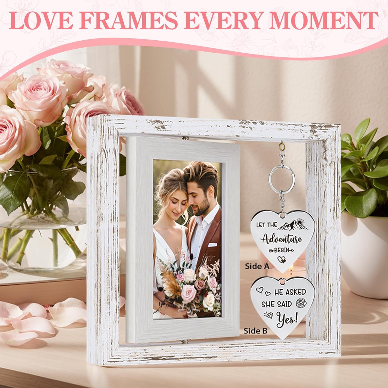 - Bride and Groom Gifts Unique: The frame, featuring a heart-shaped metal pendant, displays two photos at once to present precious memories. Every mug features a one-of-a-kind design, symbolizing a love that is equally unique. While traveling, the durable quick-release luggage tags make their bags easy to spot and keep their journeys organized. The acrylic ornament can serve as a timeless keepsake on their bedside table or shelf.
