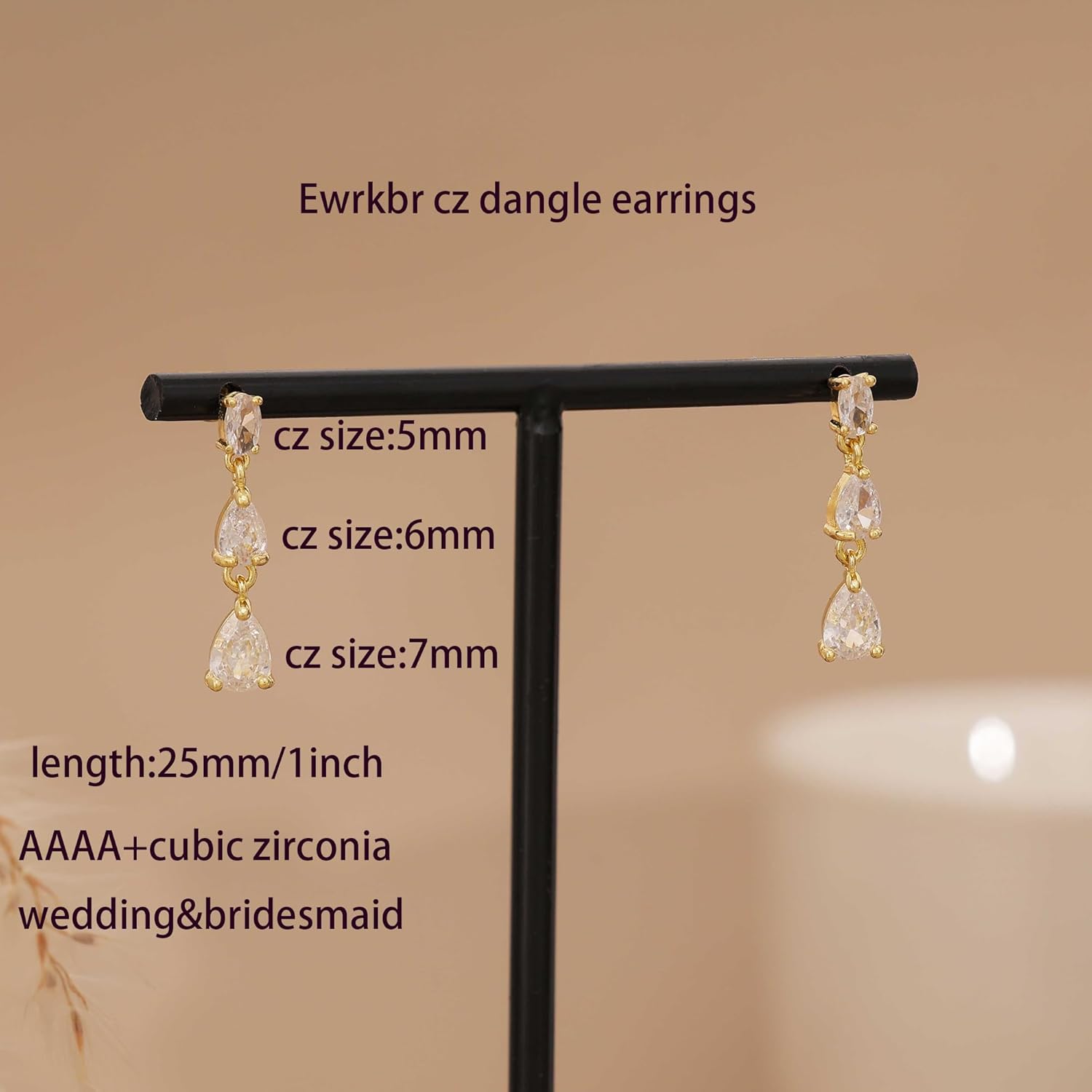 - High Quality dangle Earrings: This cz dangle earring made of high quality brass with 14k gold plated, no nickel and lead elements, hypoallergenic, suitable for people with sensitive ears