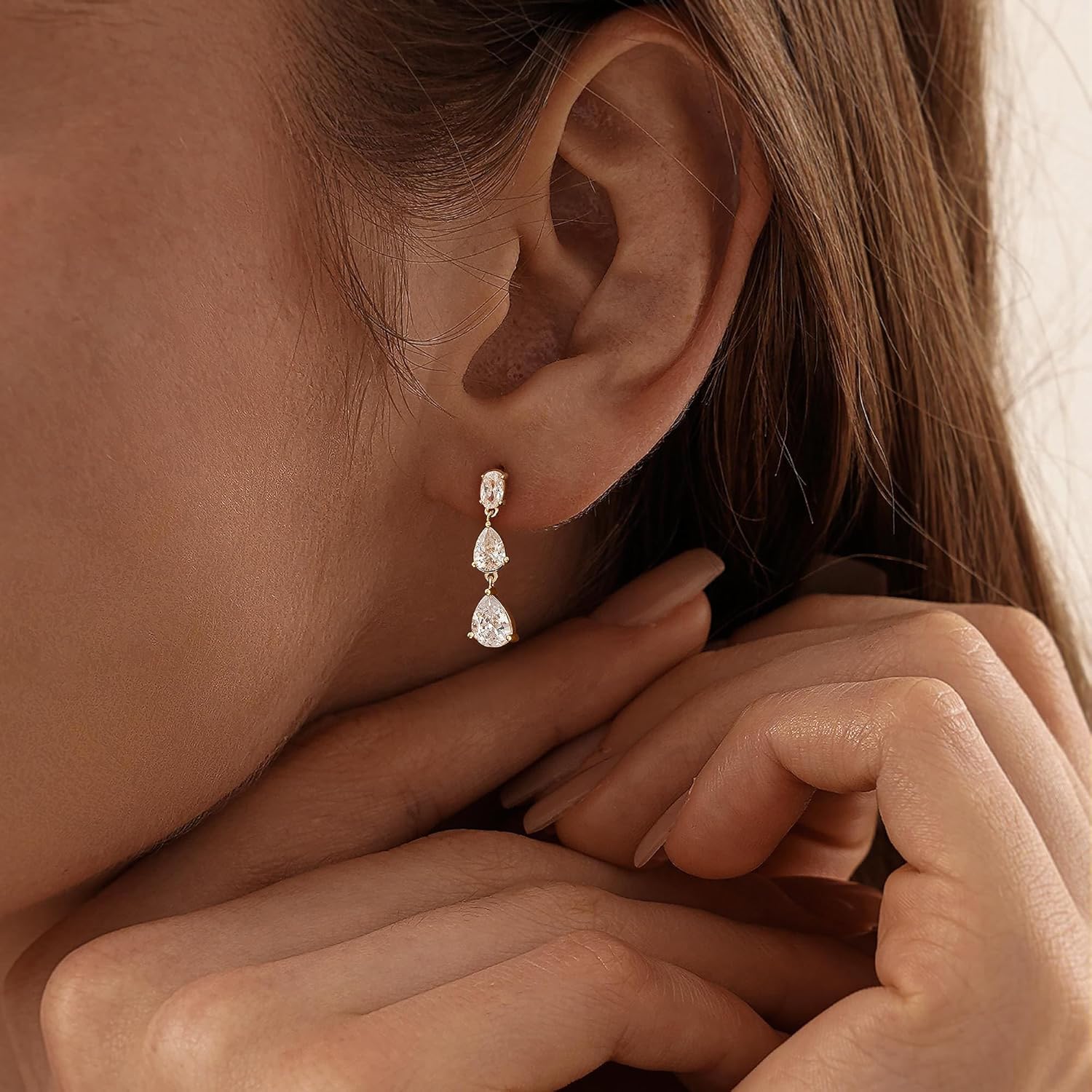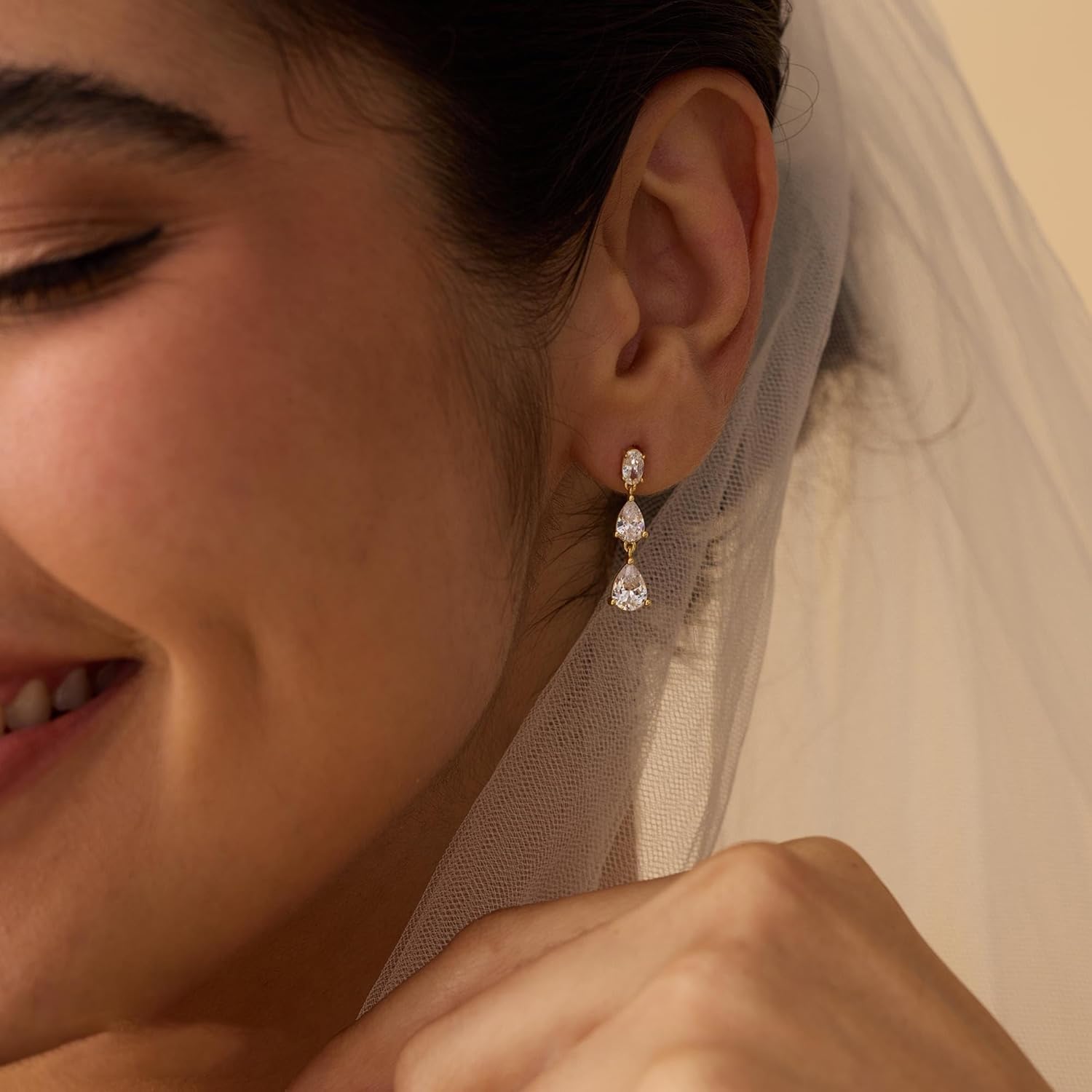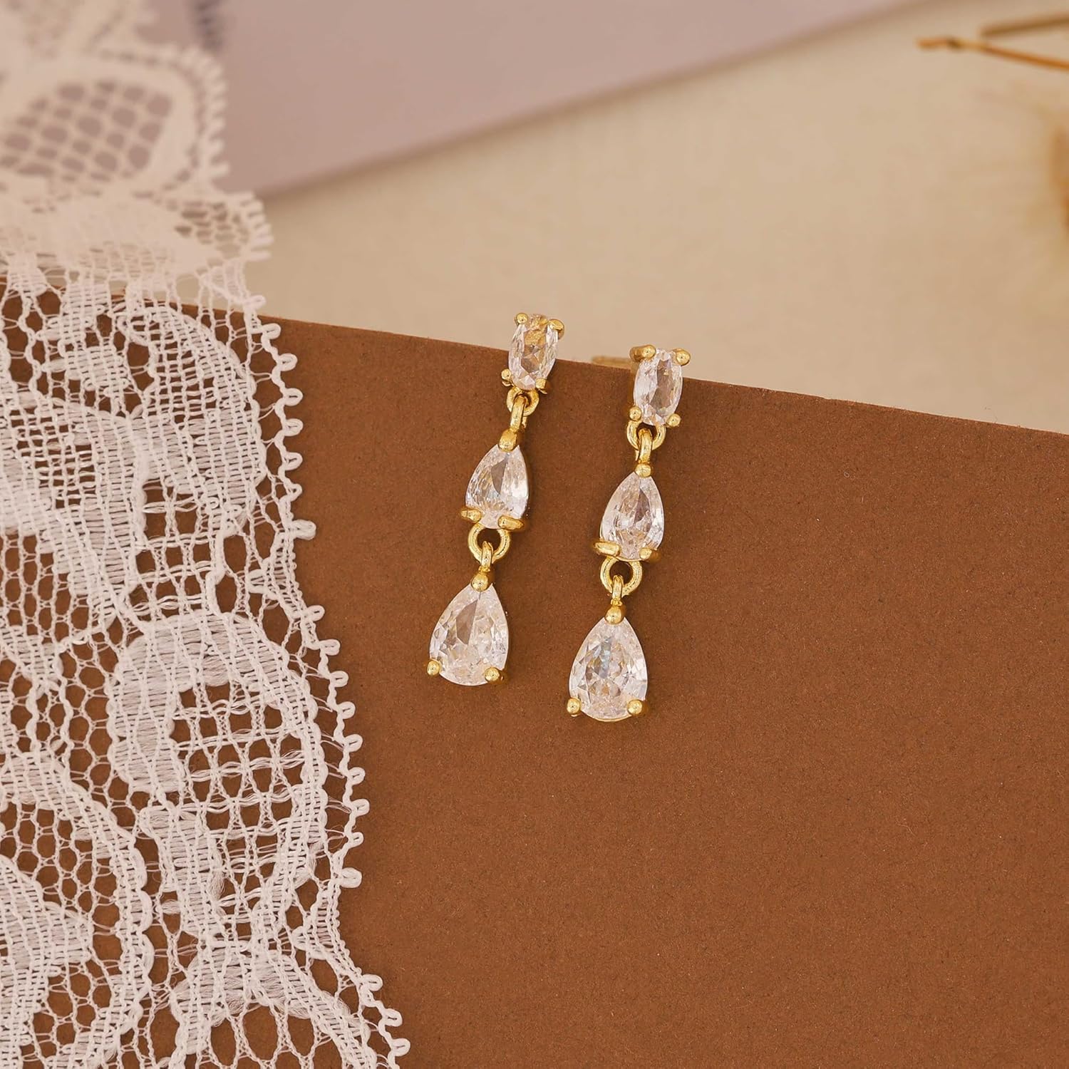 - Wedding Dangle Earrings Designs:Elegant and versatile, these minimalist dangle earrings feature sparkling diamonds set in gold plated. Perfect for everyday wear or special occasions, they make thoughtful bridesmaid gifts or a luxurious treat for yourself.