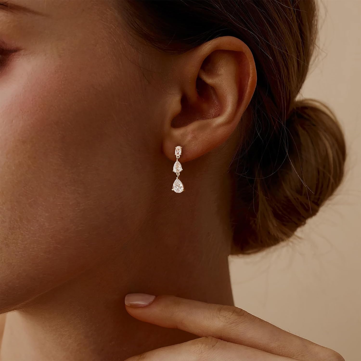 Elegant and versatile, these minimalist dangle earrings feature sparkling diamonds set in gold. Perfect for everyday wear or special occasions, they make thoughtful bridesmaid gifts or a luxurious treat for yourself.