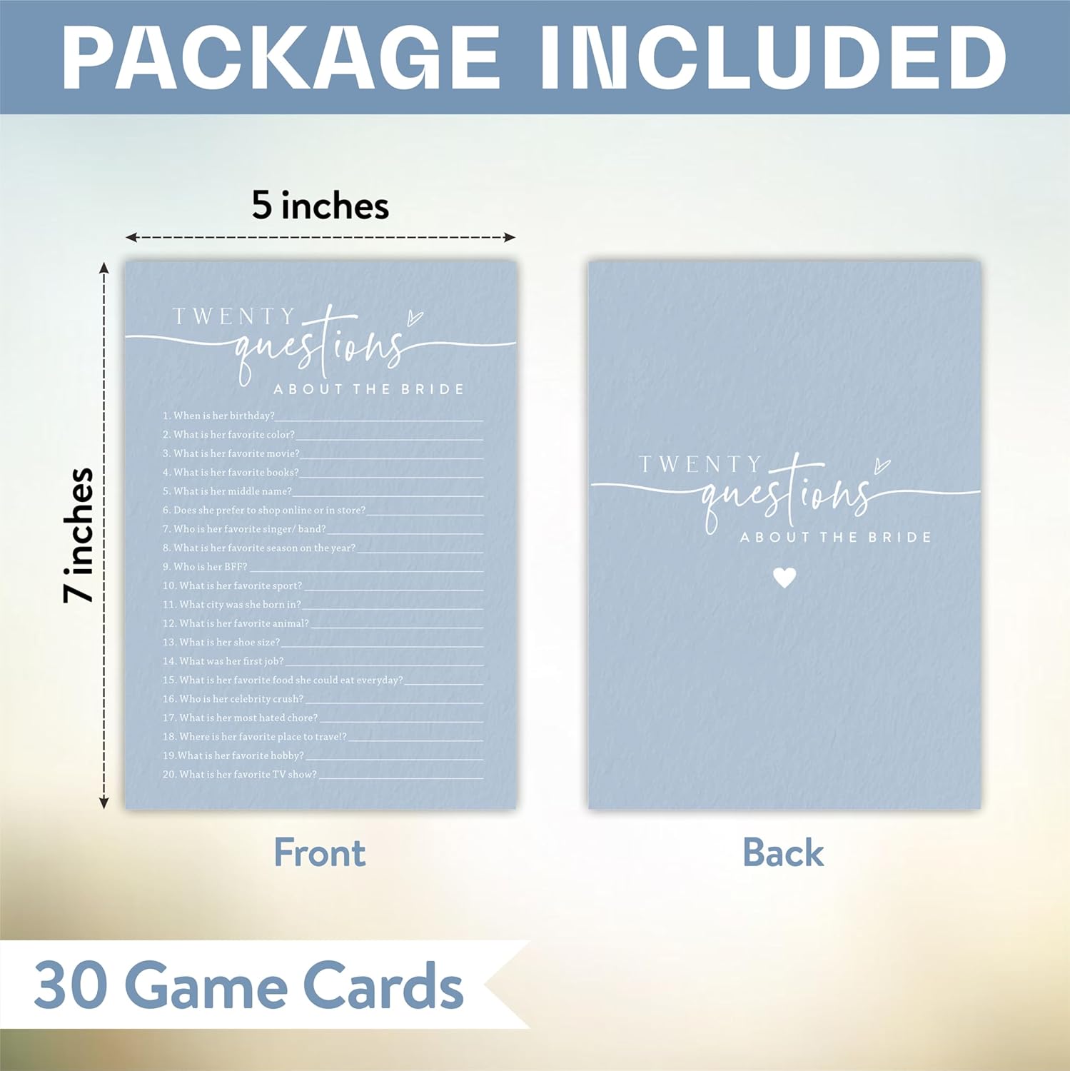 - WHAT WIll YOU GET: You will receive 30 game cards, measuring 5 x 7 inches.