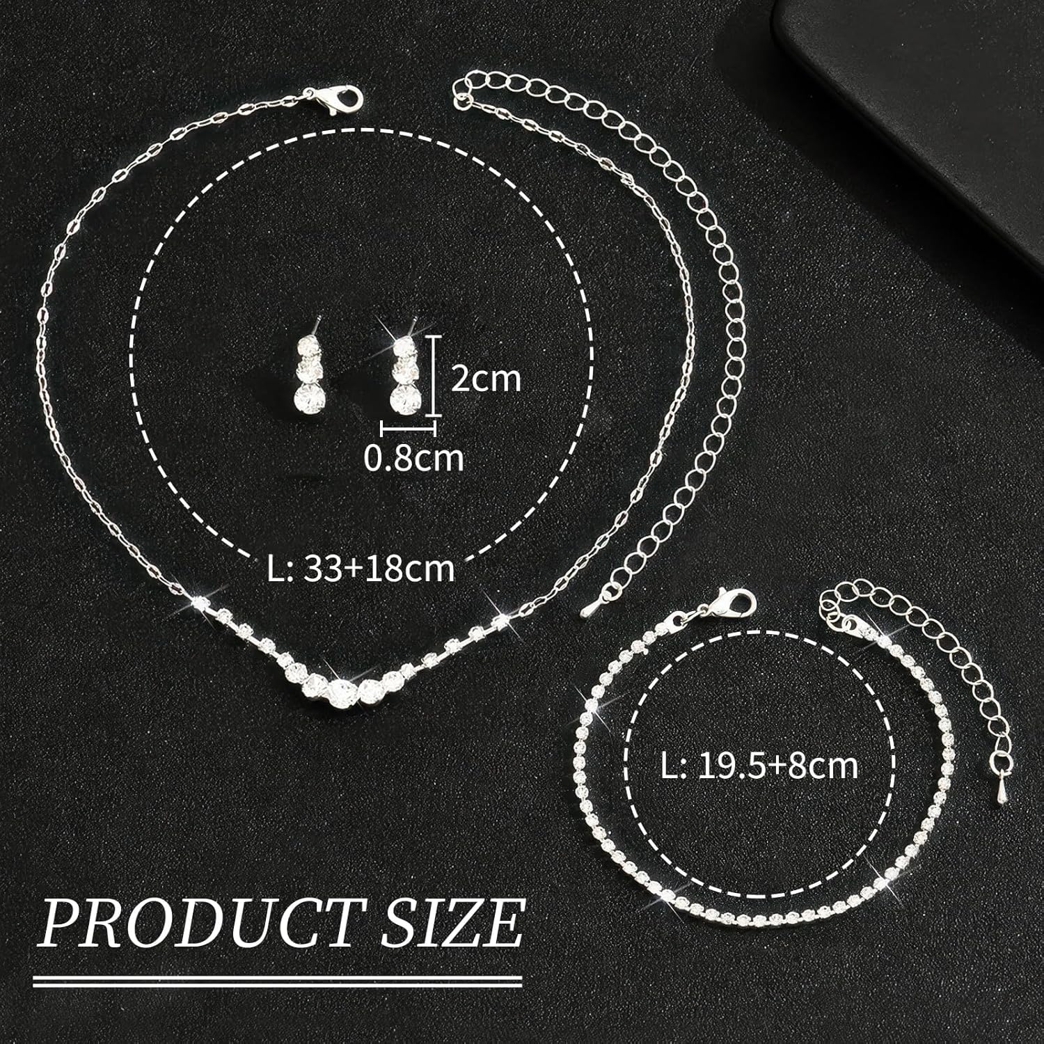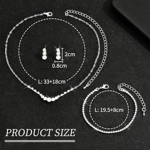 • Jewelry Specification: Wedding earrings size: 0.3*0.8inch cute and lightweight. The crystal wedding necklace is an adjustable 39+7cm extension chain (15.3+2.7in) . 3.5mm elastic tennies bracelet: 19cm. We use four-claw inlay technology which can make the zircon stay more stable on the jewelry. Lightweight and comfortable to wear it can fit most women