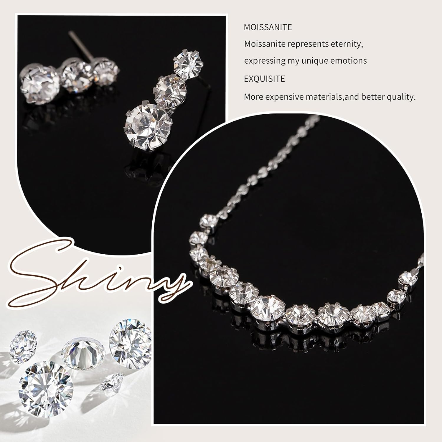 • Silver Plated Jewelry Set for Women: This wedding jewelry is made of upgard material with 18K White Gold plating, measure up of prop 65 standard, will not tarnish and hurt your skin. We choose 5A+ quality Austrian Crystals which is more shinner than others. Hypoallgenic and shines bright like diamond under the sun