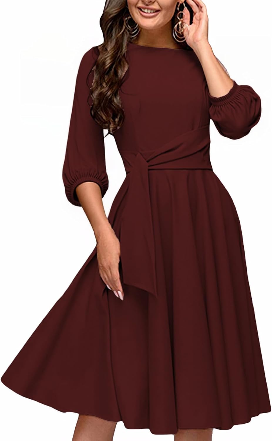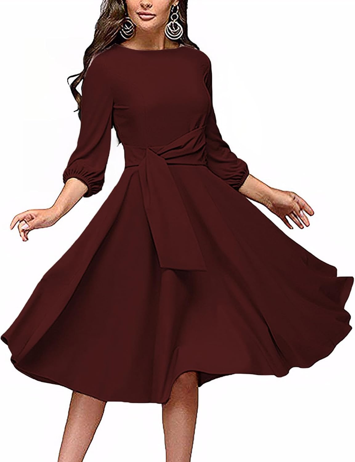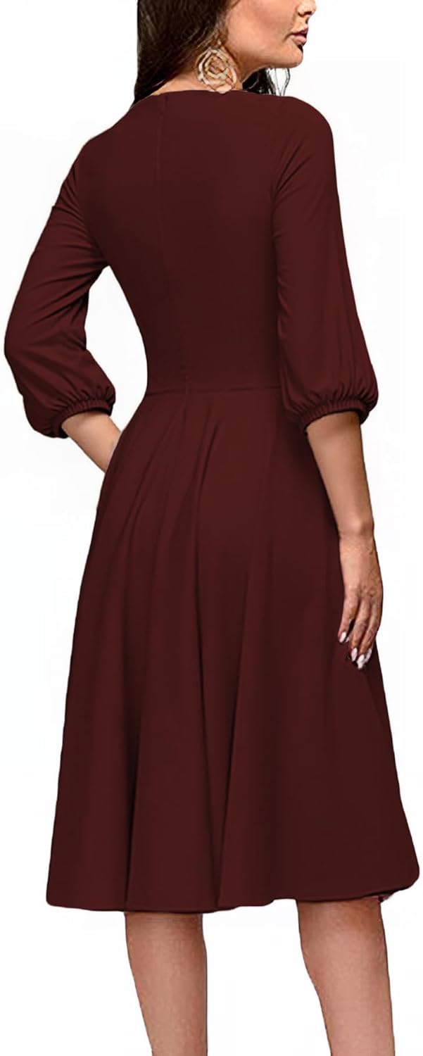 Dress Style: Elegance A Line Style, Vintage Midi DressNeckline Style: Round NeckSleeve Style: 3/4 Sleeves Ruffle Sleeves Sleeveless Puff SleeveClosure: Concealed zipper at backOccasions: It’s a Great Choice for Daily Casual, Wedding Guest , Church, Dating, Evening Dinner, Work and Other Occasion.Perfect Dress for Autumn,Winter and Early Spring Seasons.