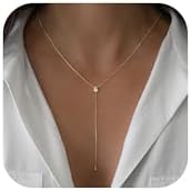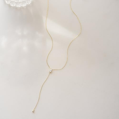 Fglqfam Lariat Necklace for Women, Dainty Long Necklaces, 14k Gold/Silver Plated Y-Shaped Drop Chain Necklace, Simple Layered Necklaces, Trendy Jewelry Gifts for Her
