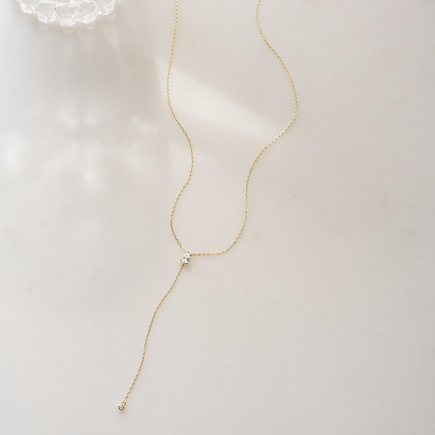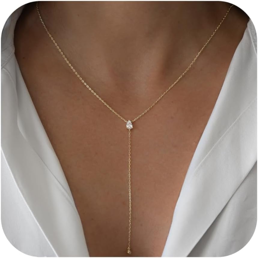 • Necklace Design: This Y-shaped necklace features a teardrop-shaped CZ pendant that sparkles with every movement. Its minimalist yet elegant design adds a graceful accent to any outfit