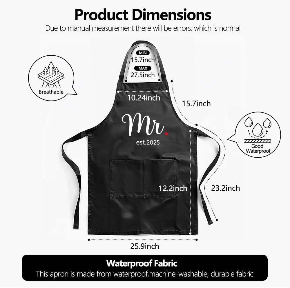 • 【His & Hers Design】 With matching “Mr” and “Mrs” aprons, this set represents togetherness and is a great way to show love and support as they embark on their culinary adventures