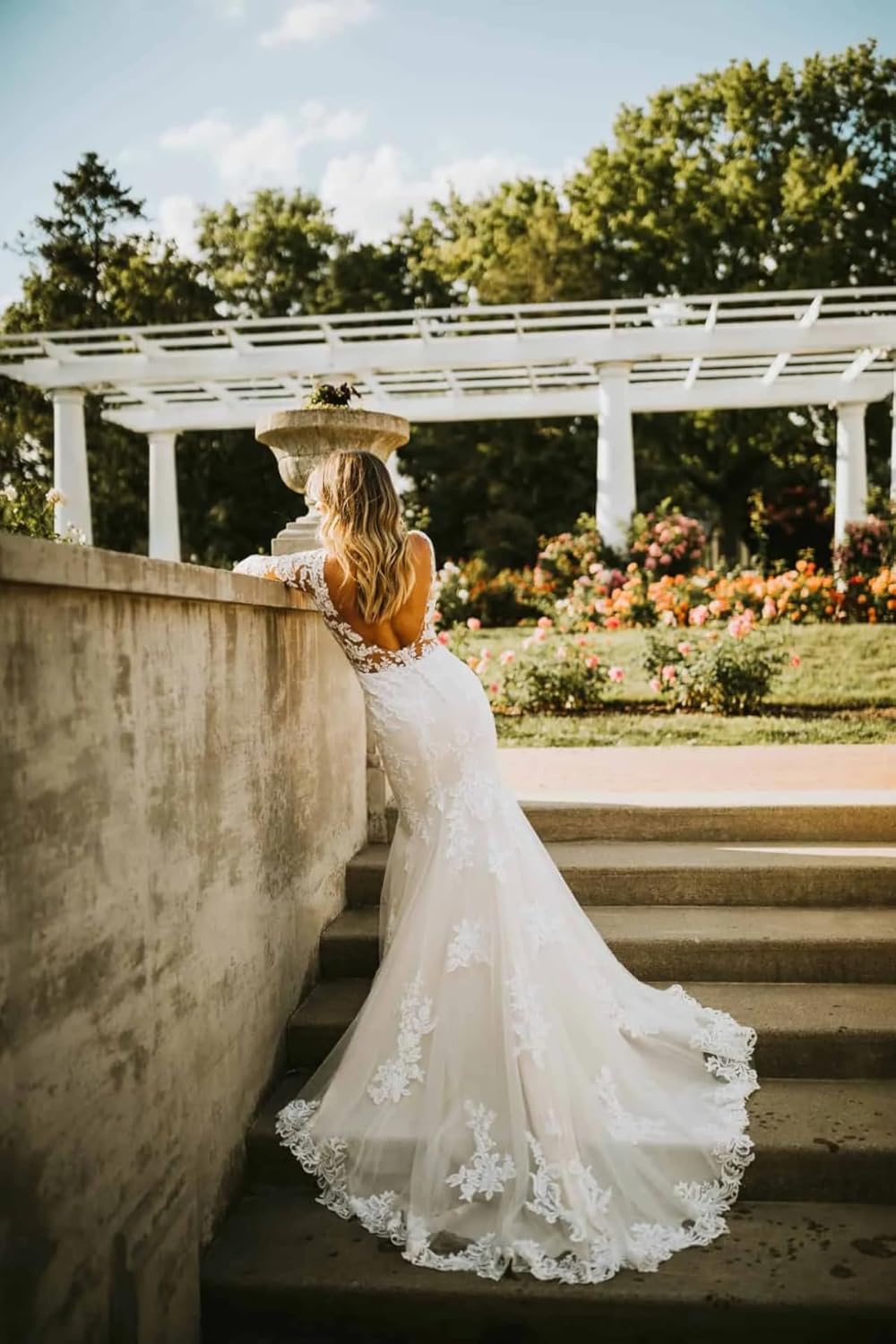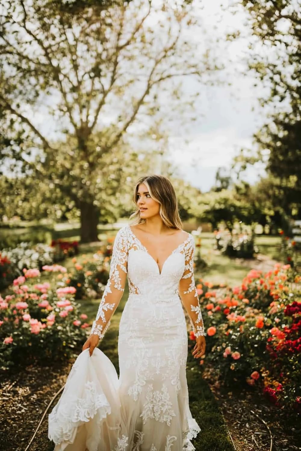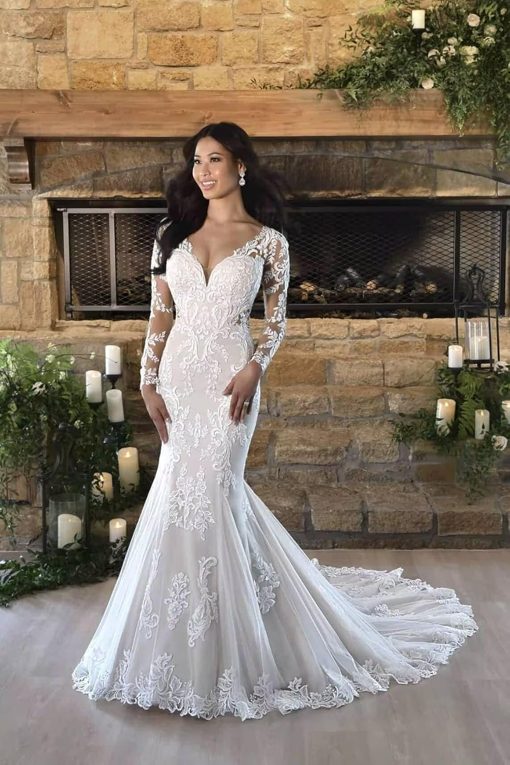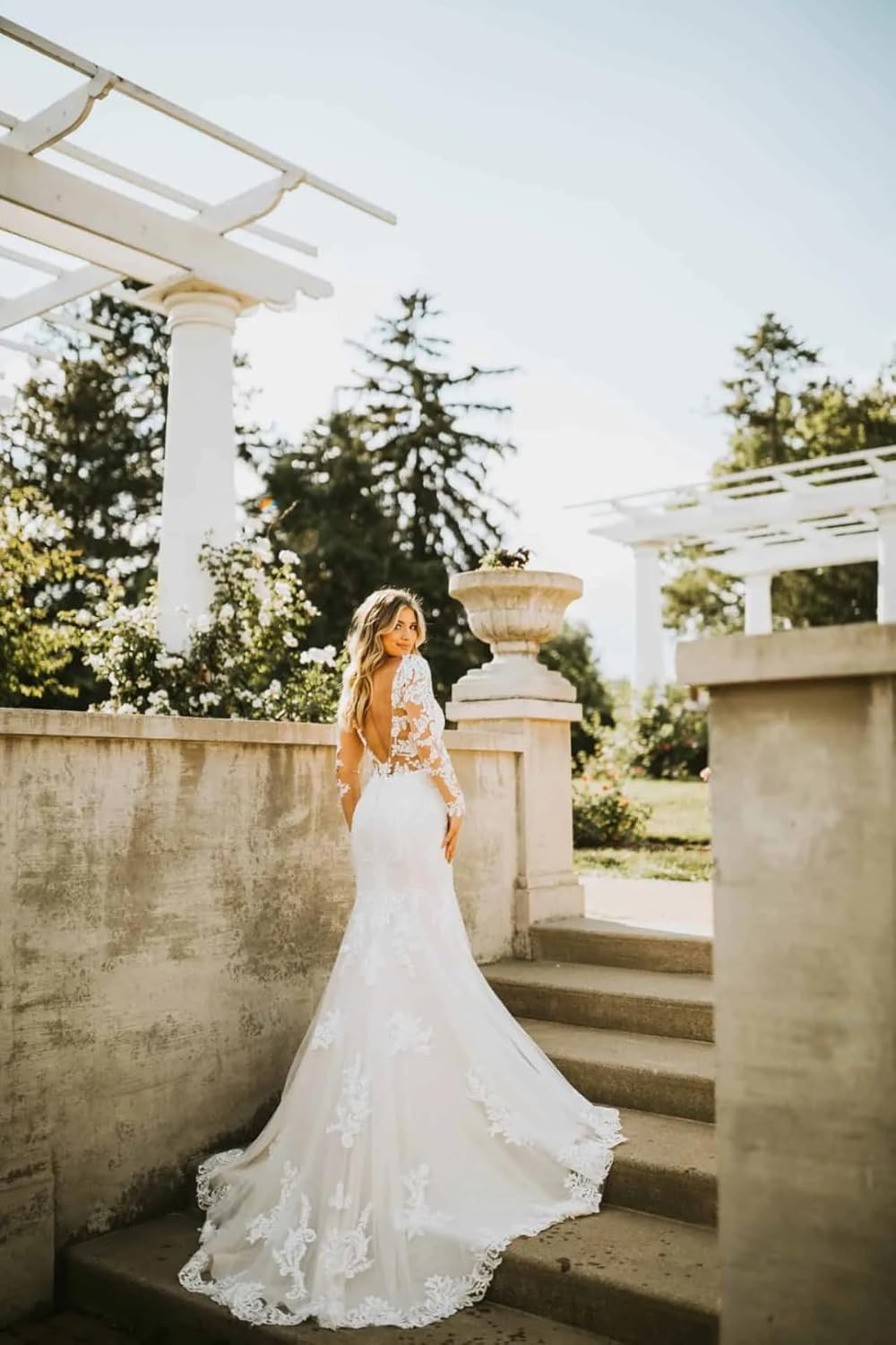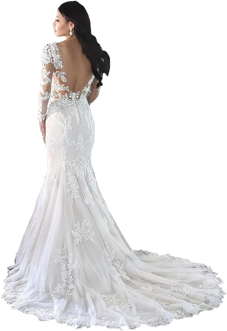 - Feature: Fivsole Women’s White V Neck Wedding Dresses for Bride 2025 Mermaid Lace Elegant Long Sleeve Backless Tulle Beach Bridal Dress Boho Wedding Gown with Train