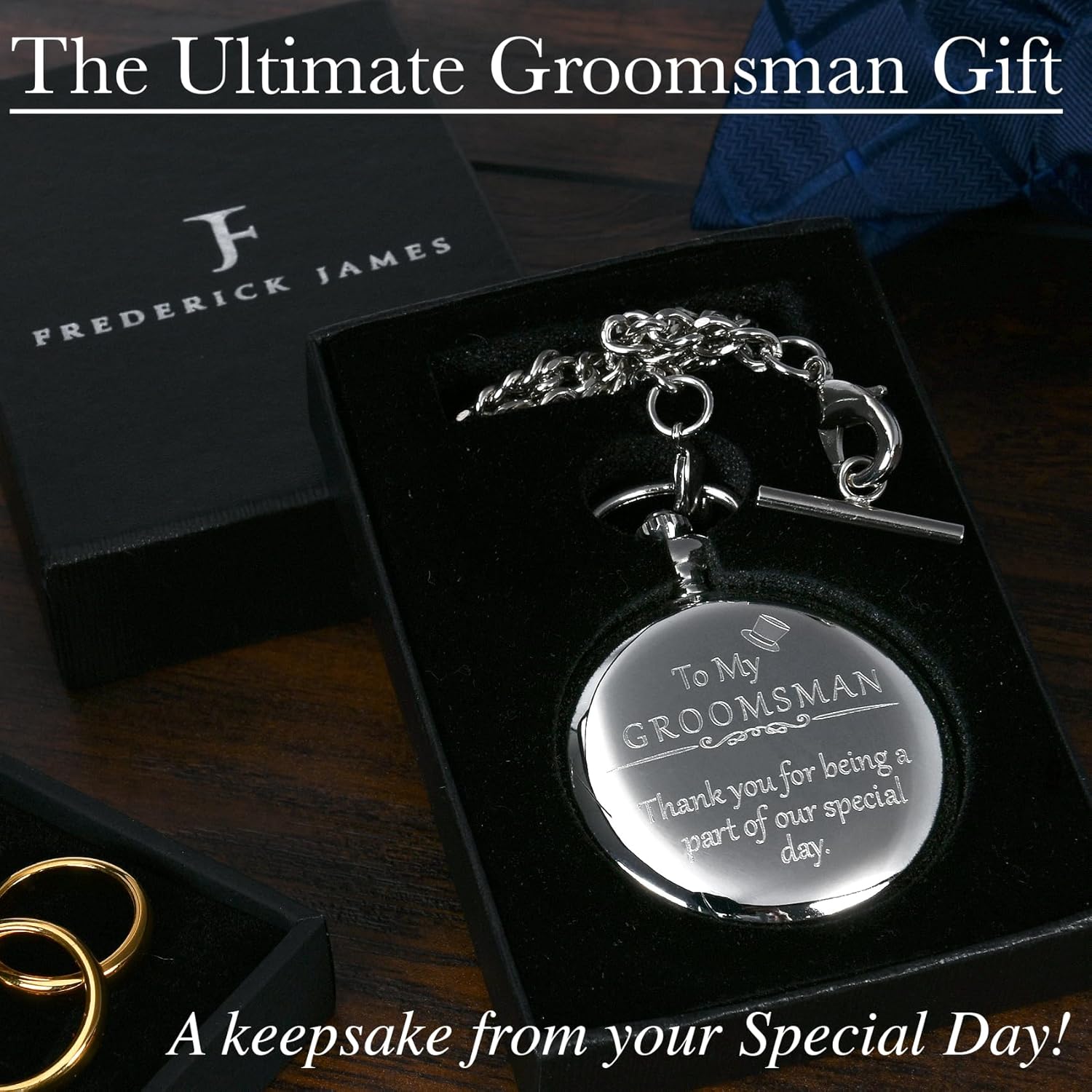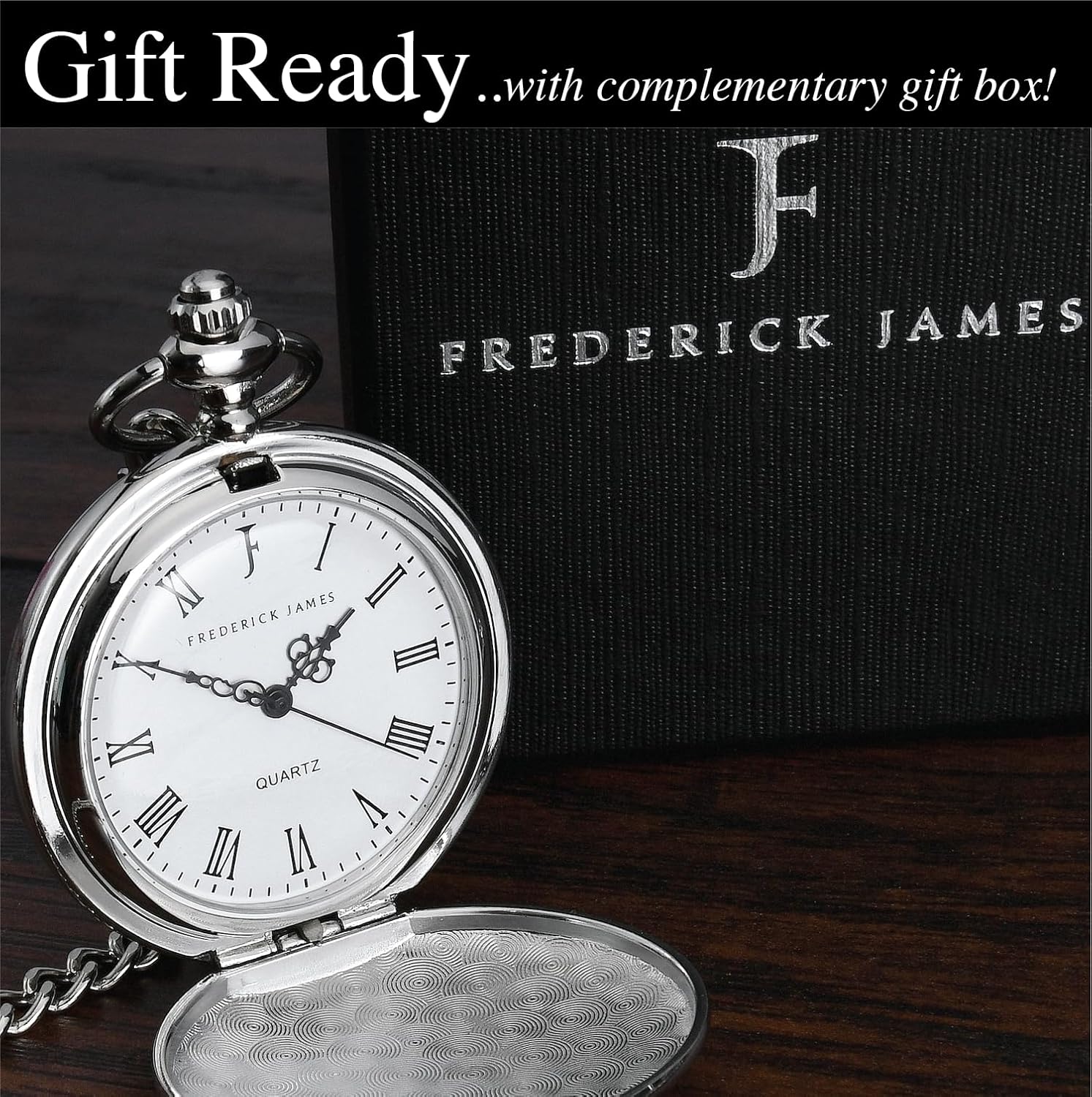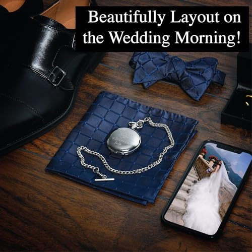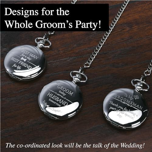 FJ FREDERICK JAMES Wedding Pocket Watches for Groomsman, Best Man, Groom, Father of The Bride & Groom I Silver Engraved I Complete Their Wedding Attire