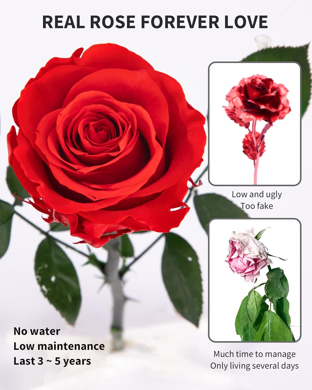 - Preserved Flowers – Preserved rose is made of nature fresh rose. With a special preservation technique, maintain most of characteristics of beauty when the flowers are at their best, These never withered roses are no need to water and low maintenance, keep fresh up to 3 years. Pick up this fresh cut roses gifts for women to express your forever love, appreciation and true respect