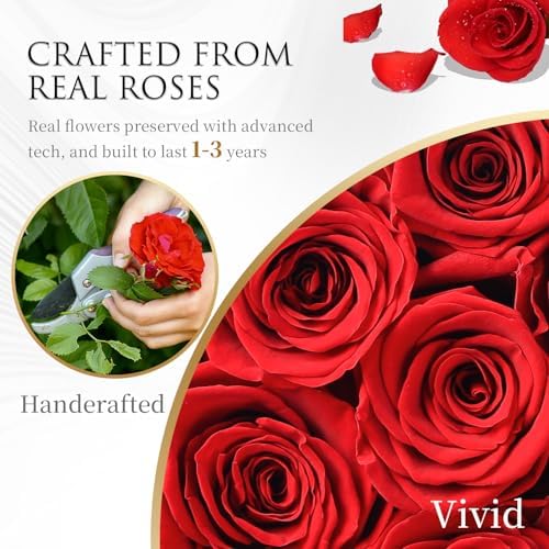- Genuine Real Forever Flowers: Preserved at peak bloom, experience the everlasting beauty of real roses, meticulously preserved to maintain rose natural soft feel, vibrant color & exquisite for 2-3 years. Unique process ensures your flower remains as timeless as your affection, making it the perfect long-lasting floral arrangement roses gift for her that never fades