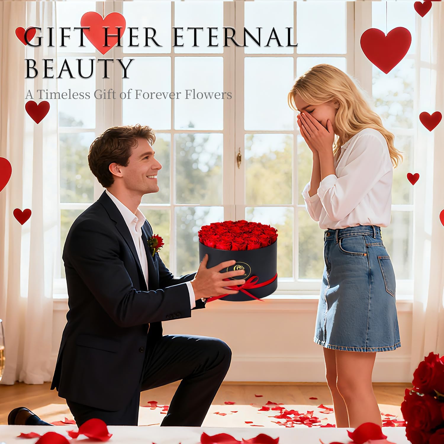 - Gift-ready Preserved Flowers: 27 preserved rose is forever carefully arranged in a round box with layered petals that capture the lifelike beauty of a bloomed flower. With satin ribbon, a card, protective inner tray & secure packaging for delivery – ready to delight in hours, our forever flowers elevate your gifting experience with sincerity & refinement